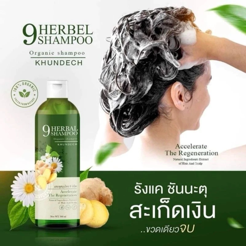 มีตำนิขวดบุบ แชมพูขุนเดช 9 herbal shampoo สมุนไพร 9 ชนิด ลดรังแค 300 mL