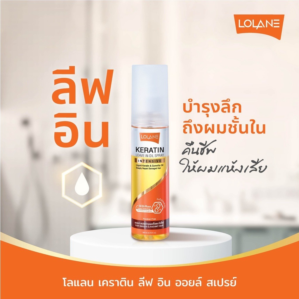 (140ml/ขวด) Lolane Keratin Leave In Oil Spray โลแลน เคราติน ลิฟ ออยล์ สเปรย์ เคราติน บำรุงผม [2154]
