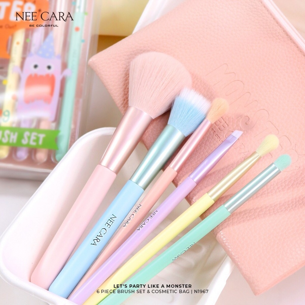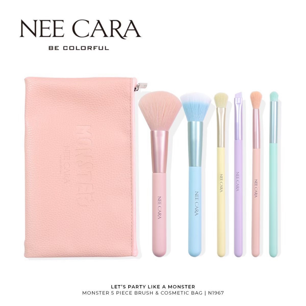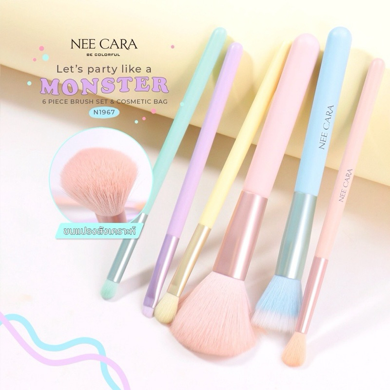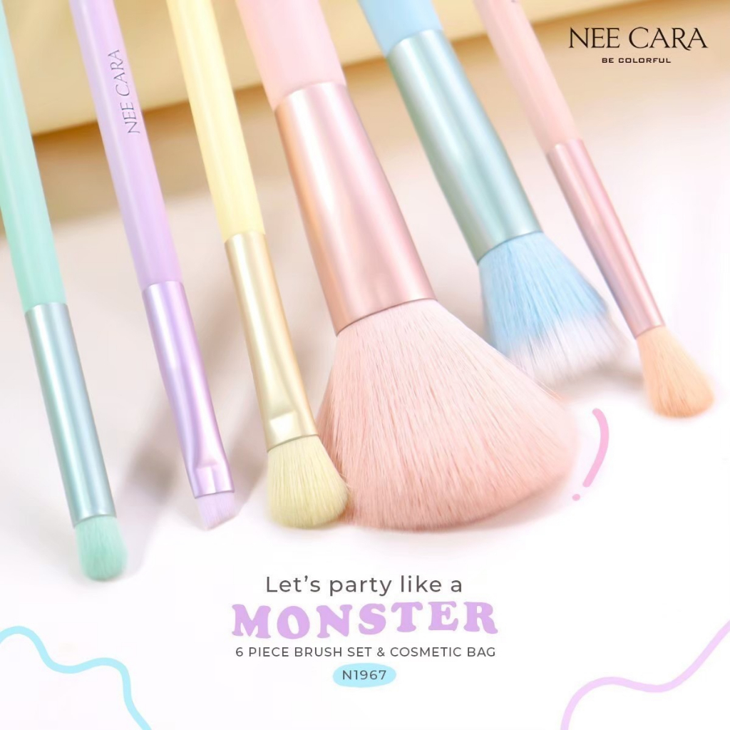 Nee Cara Let's Party A Monster นีคาร่า เซทแปรงแต่งหน้า มอนส์เตอร์ 6 ชิ้นพร้อมกระเป๋า (N1967)