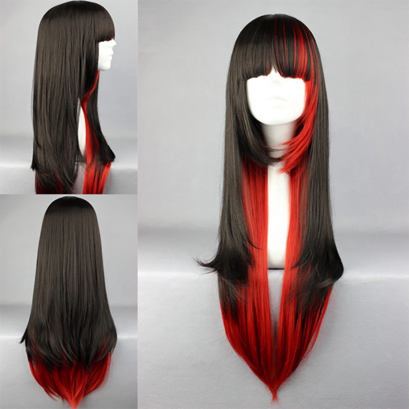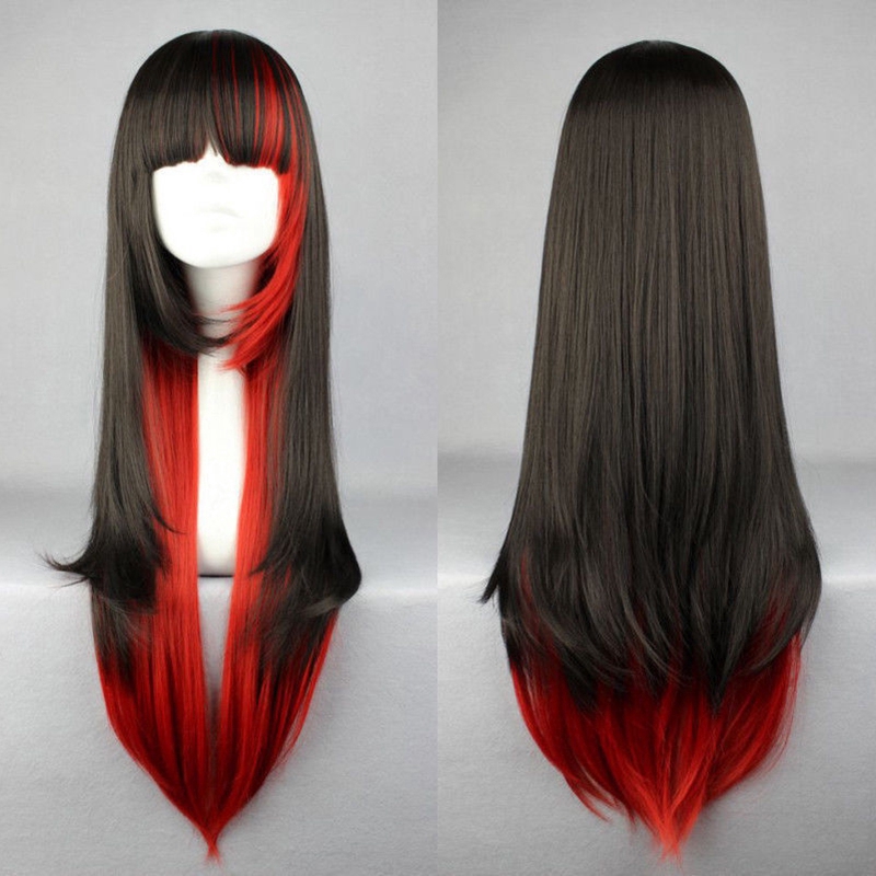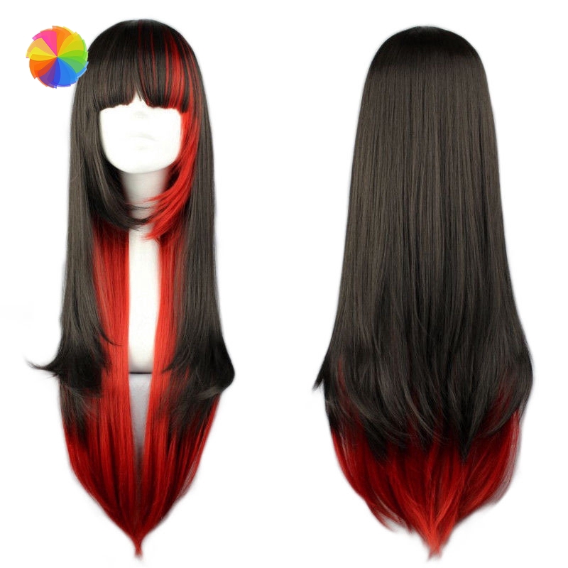 วิกผมยาวตรงสีดําไล่โทนสีแดงคอสเพลย์