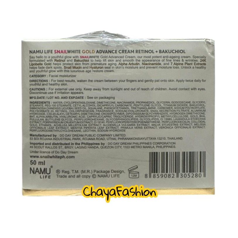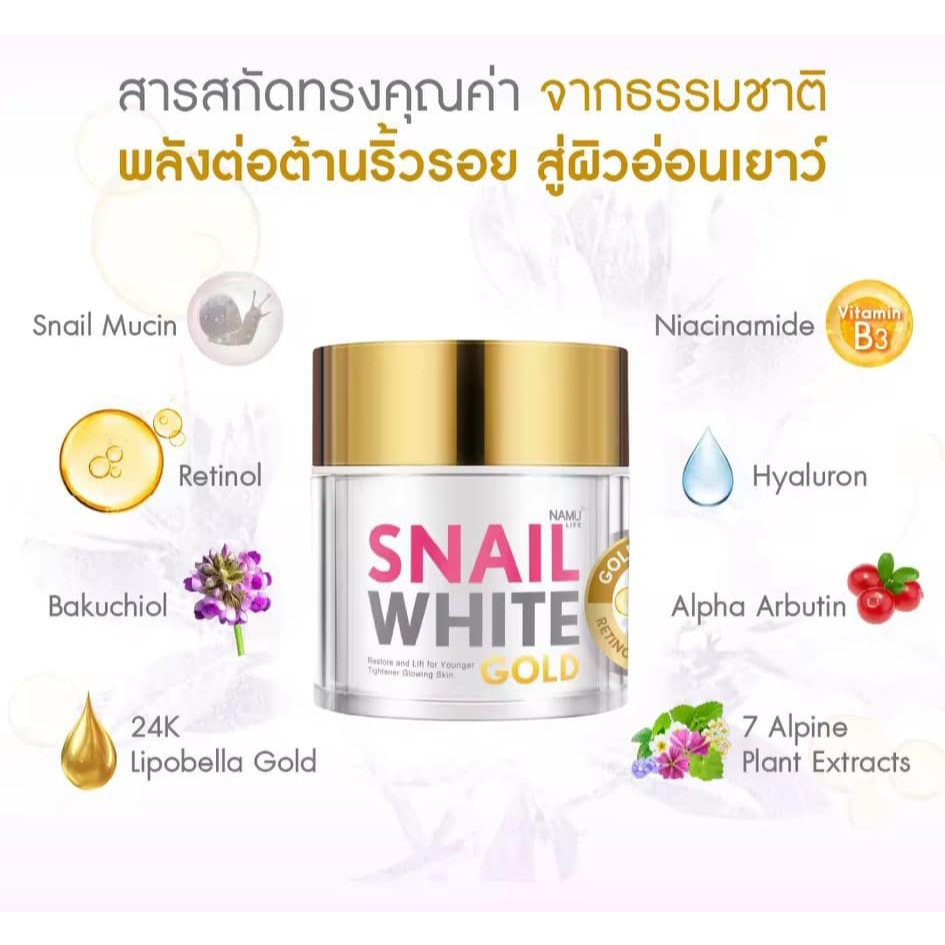 *SALE* Namu Life Snailwhite นามุ ไลฟ์ สเนลไวท์ โกลด์ แอดวานซ์ครีม เรตินอล+บัคกูซิล 50มล. Exp05/27