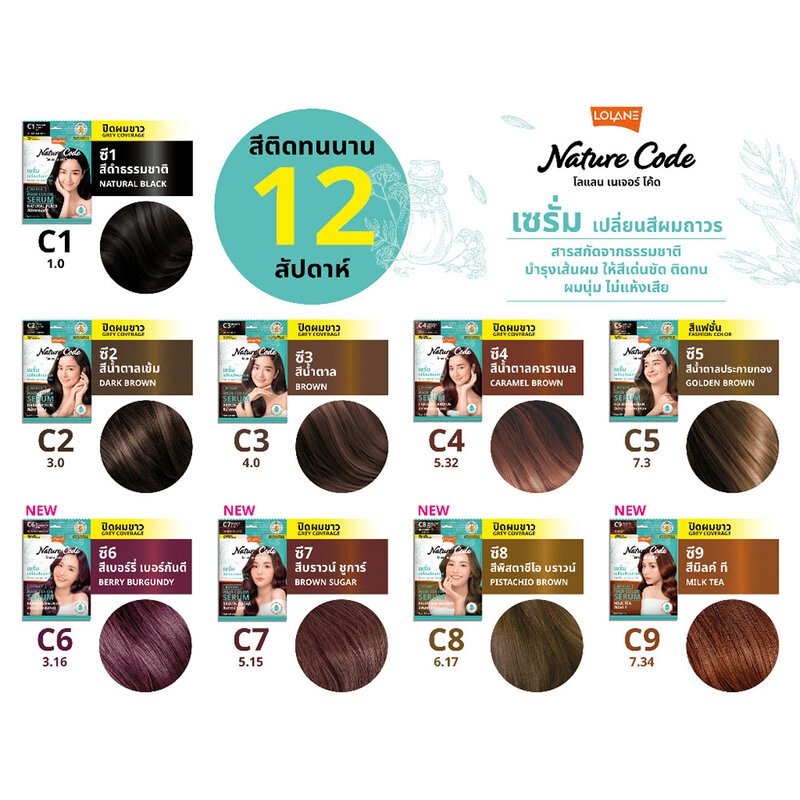 โลแลน เนเจอร์โค้ด โบทานิค แฮร์ คัลเลอร์ เซรั่ม Lolane Nature Code Botanic Hair Color SERUM #สีผมโลแลนแบบซอง