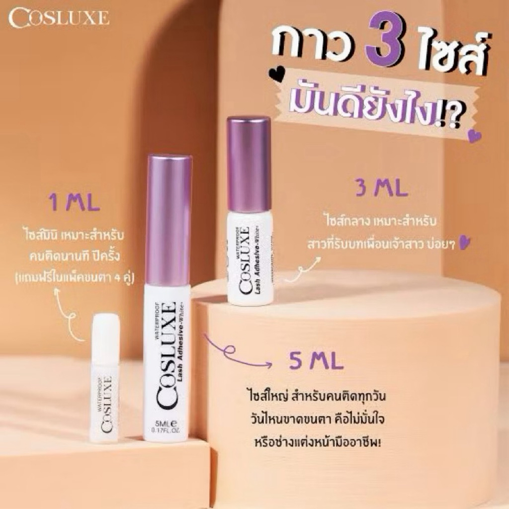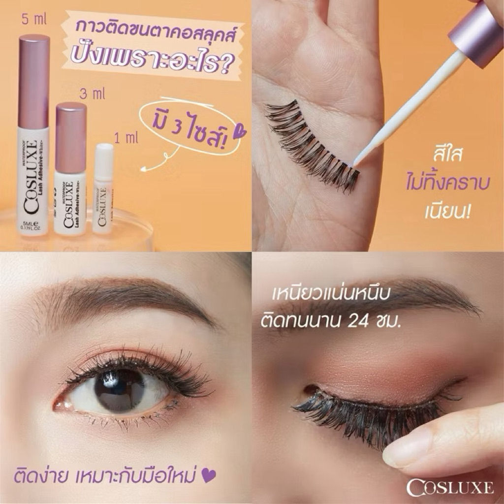 Cosluxe กาวติดขนตาปลอม Lash Adhesive White มี 3 ขนาด 1ml. / 3ml. / 5ml. กาวติดขนตาปลอม สีขาวไม่เป็นคราบ