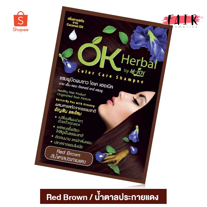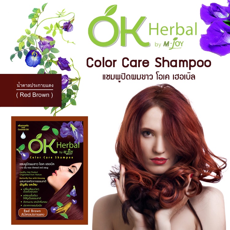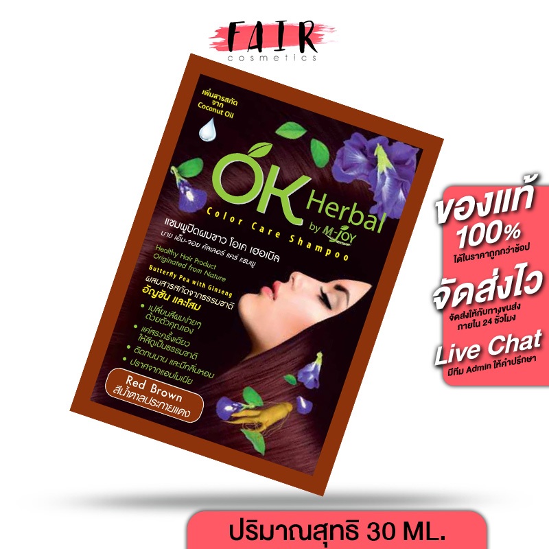 แชมพูปิดผมขาว OK Herbal โอเค เฮอเบิล [30 มล.] สีน้ำตาลประกายแดง