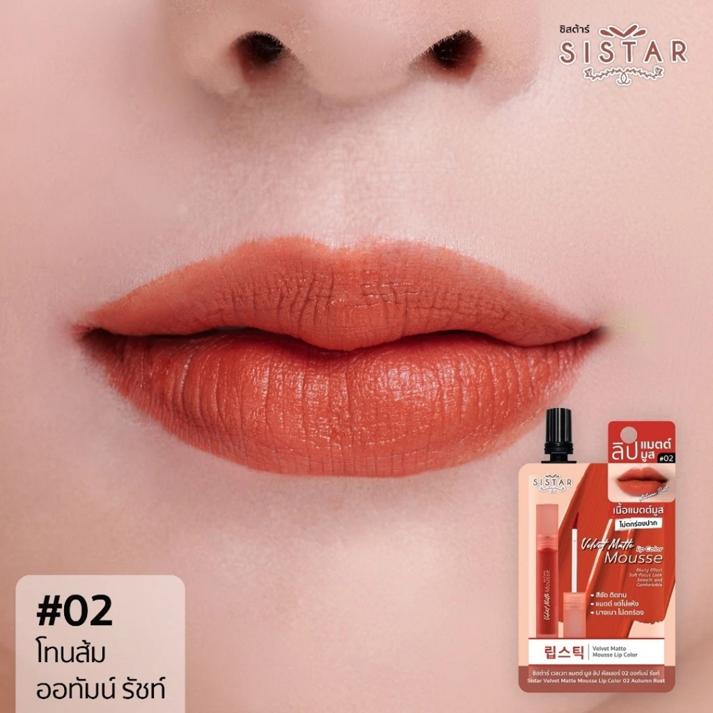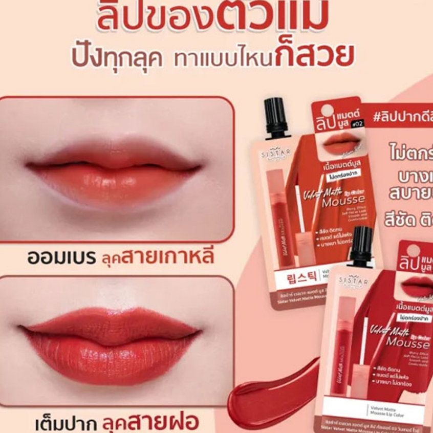[ ซอง ] Sistar Velvet Mousse Lip Color ซิสต้าร์ เวลเวท มูส ลิป คัลเลอร์ 2g ( เลือกสี )