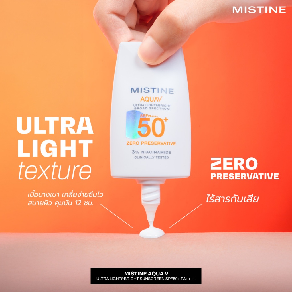 (15ml) Mistine Aqua V Ultra Light&Bright Sunscreen มิสทิน อะควา วี อัลตร้า ไลท์&ไบร์ท กันแดด [8486]