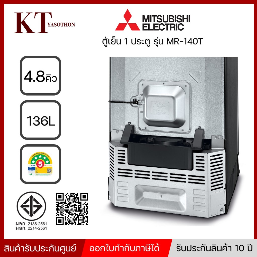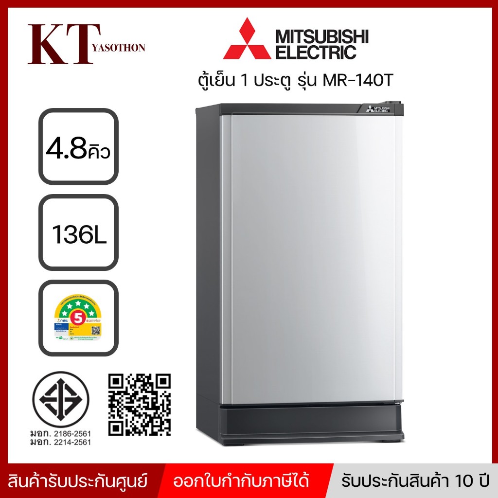 Mitsubishi Electric ตู้เย็น 1 ประตู รุ่น MR-140T ขนาด 4.8 คิว สีเงิน ประกันศูนย์++