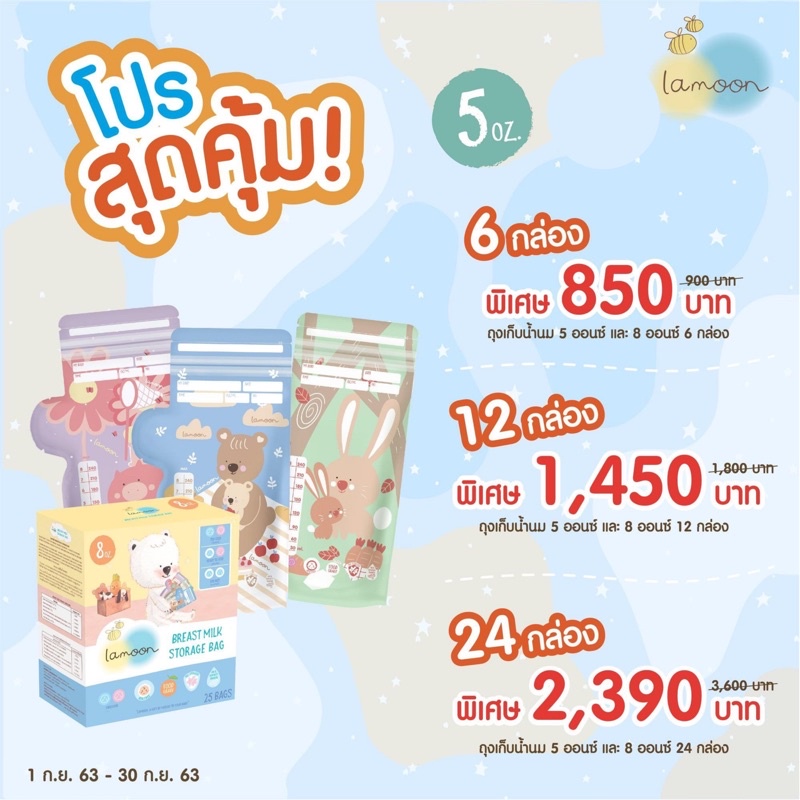 Lamoon ละมุนถุงเก็บน้ำนมขนาด 5 ออนซ์ เพิ่มสีสันให้คุณแม่ในการปั้มนมกับถุงเก็บน้ำนมลายน่ารัก