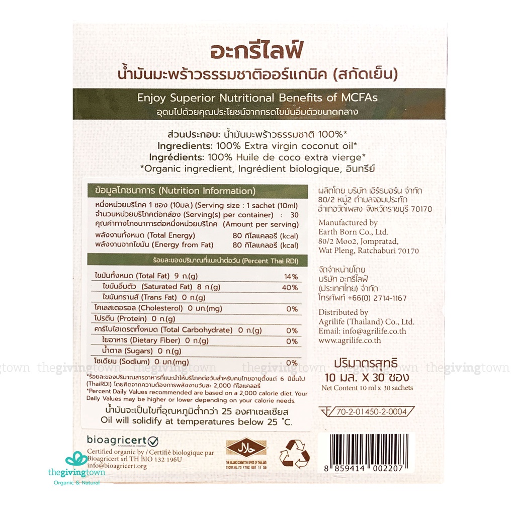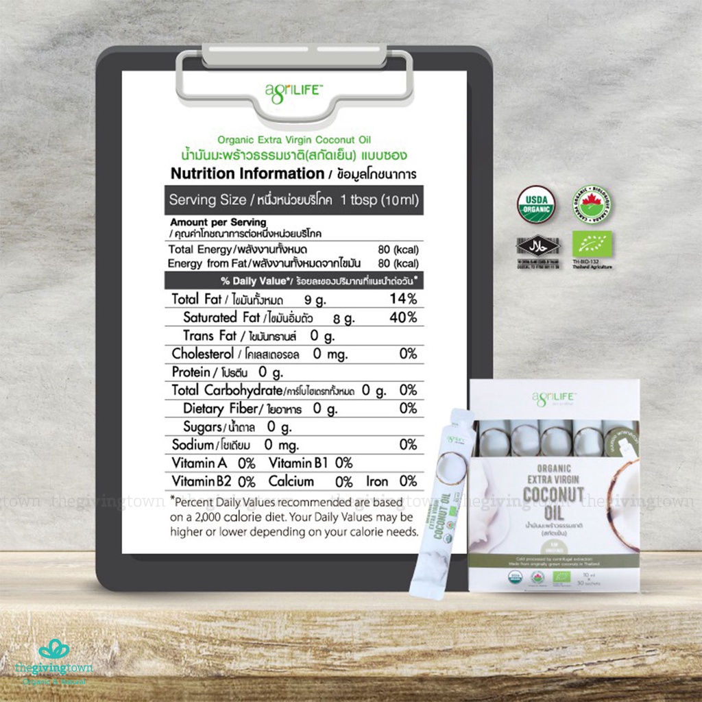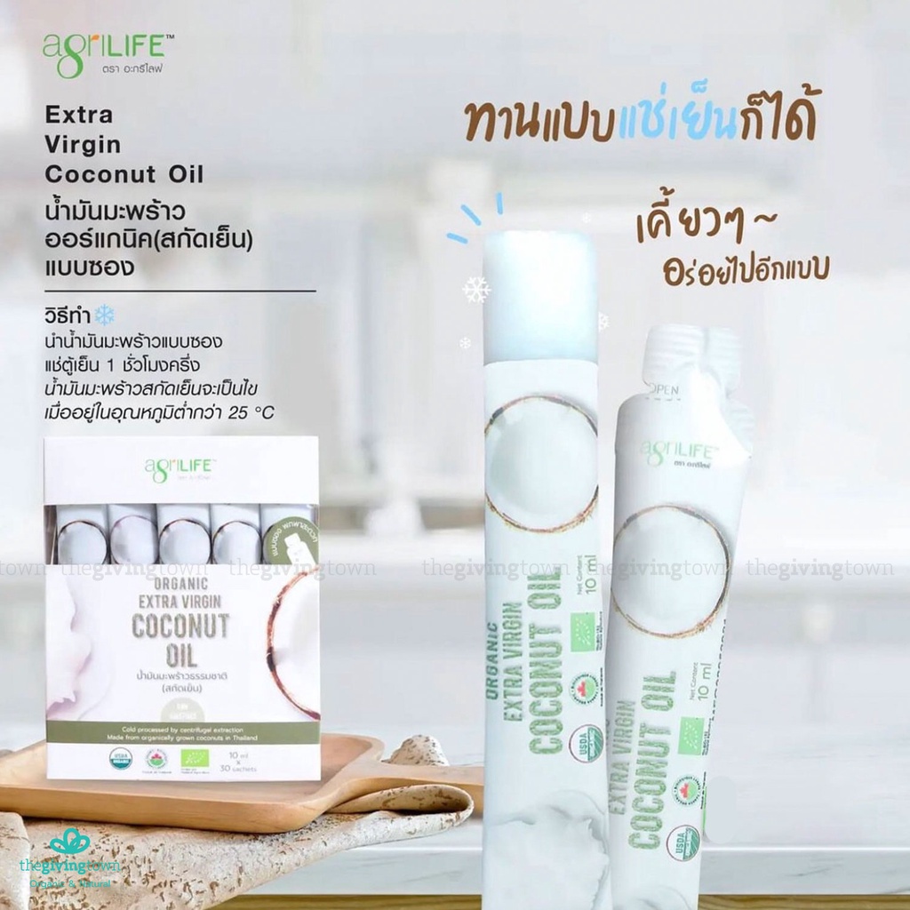 Agrilife น้ำมันมะพร้าวสกัดเย็น แบบซองพกพา แบบกล่อง เกรดออร์แกนิค อะกรีไลฟ์ โคโคนัทออยล์ Extra Virgin