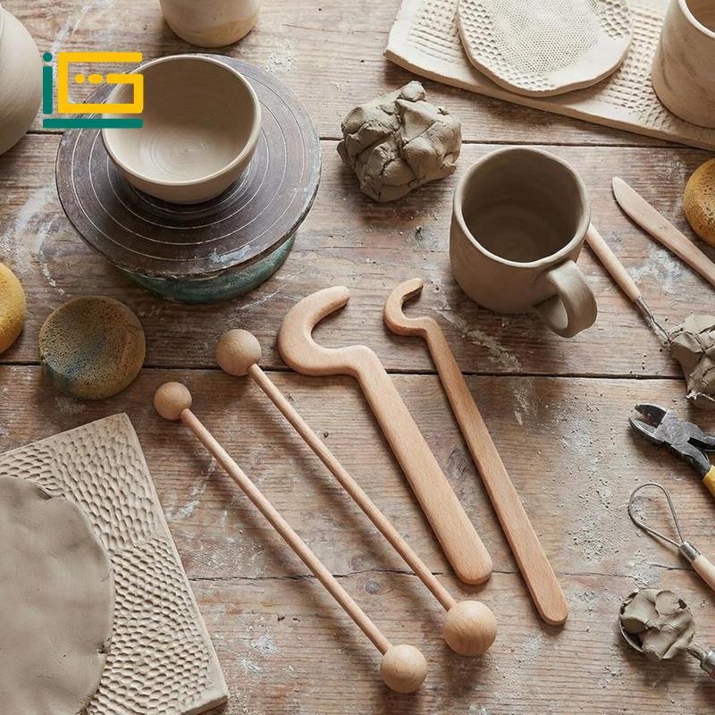 4 ชิ้นไม้เครื่องปั้นดินเผาโยนเครื่องมือ2โยนติดสําหรับเครื่องปั้นดินเผาสร้างและ2เครื่องมือด้ามยาว,แท่งดิน,เครื่องมือเซรามิ