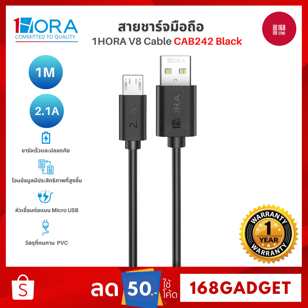 1Hora สายชาร์จมือถือ รุ่น CAB242/CAB243/CAB244 รองรับ USB-IP Cable TIPA C 2.1A 1M