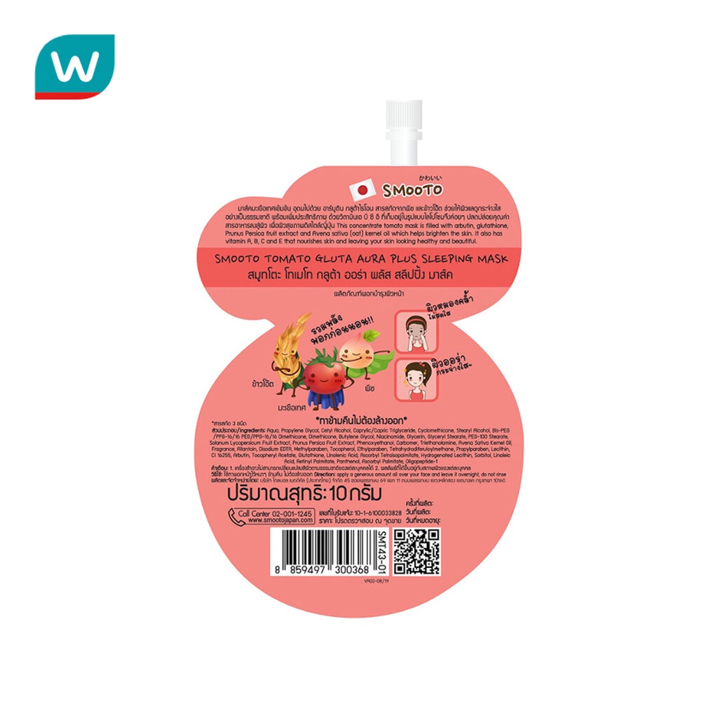Smooto สมูทโตะ โทเมโท กลูต้า ออร่า พลัส สลีปปิ้ง มาส์ก 10ก.