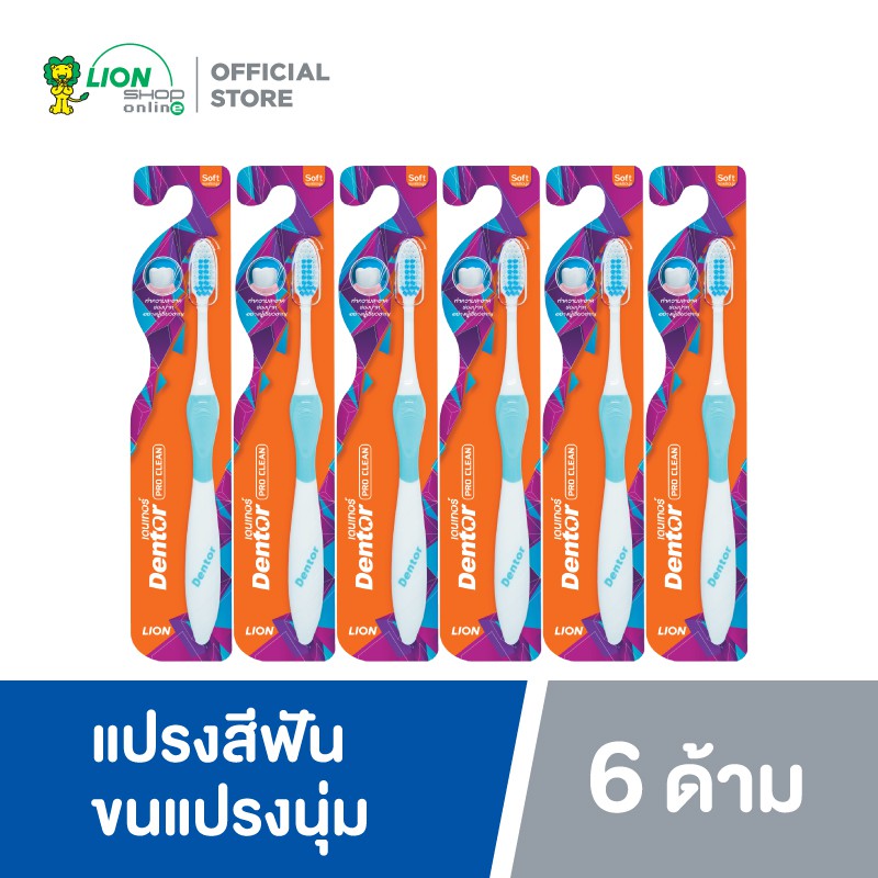 Dentor Pro Clean แปรงสีฟัน เดนเทอร์ โปร คลีน 6 ด้าม