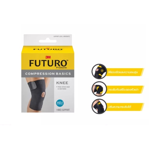 FUTURO Knee Compression Basics ADJ ฟูทูโร่ พยุงหัวเข่า รุ่นเบสิค ปรับกระชับได้ กล่องสีเหลือง #9843