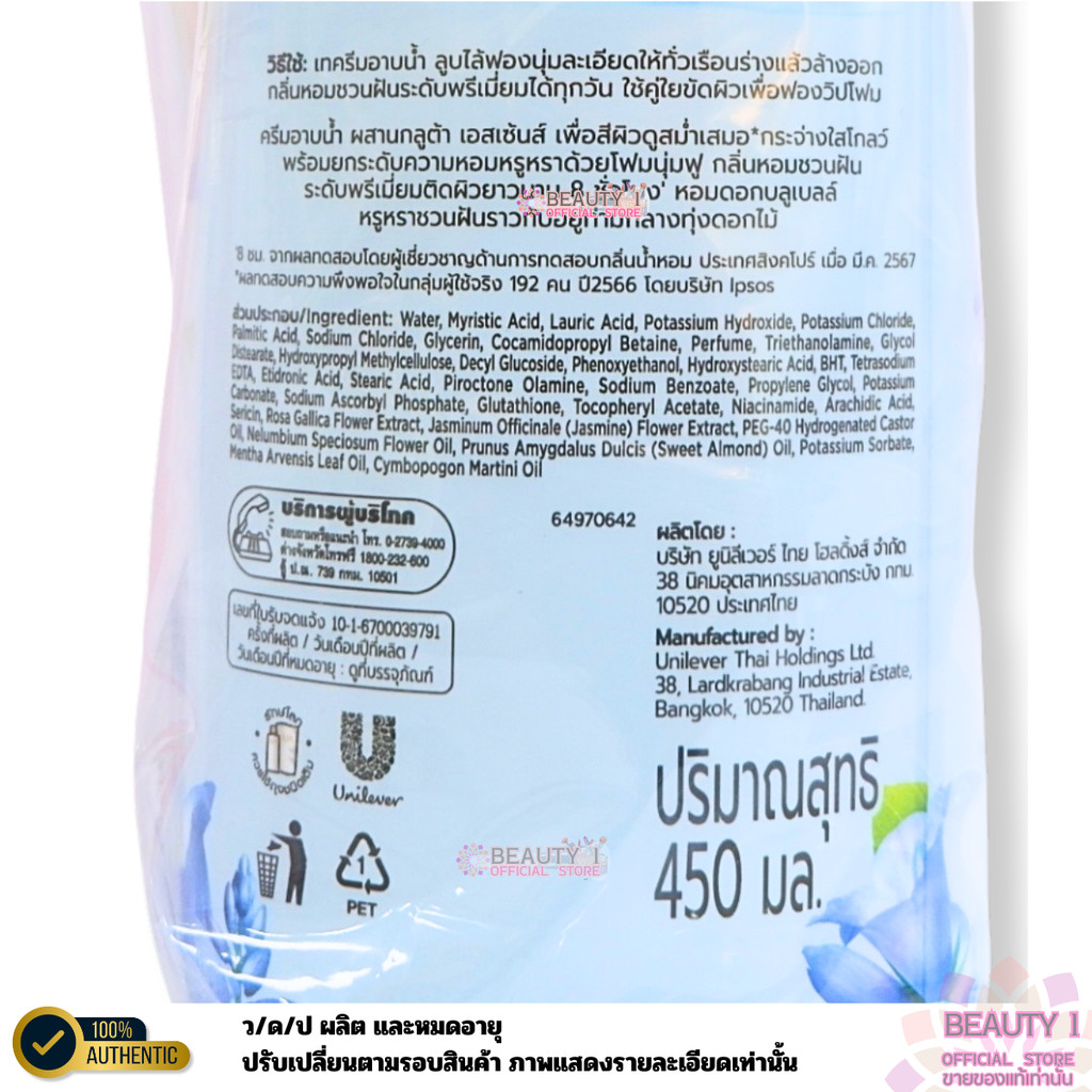 (ขวดปั้ม1+1) สบู่เหลว ลักส์ ไวท์ ฟรีเซีย ฟราแกรนซ์ บอดี้วอช LUX White Freesia Body wash 450 มล. แพ็คx2