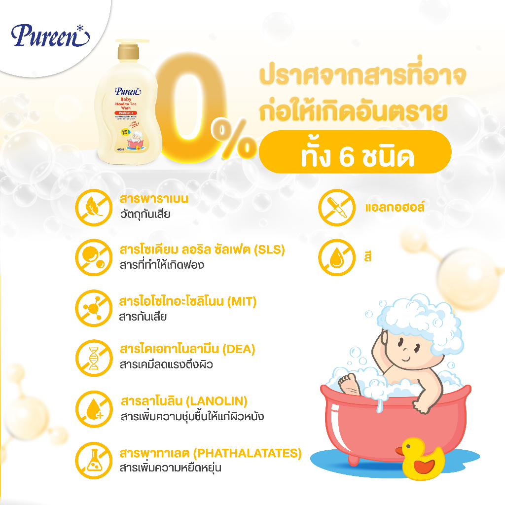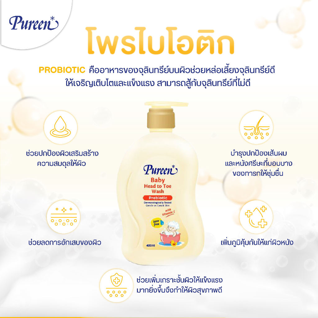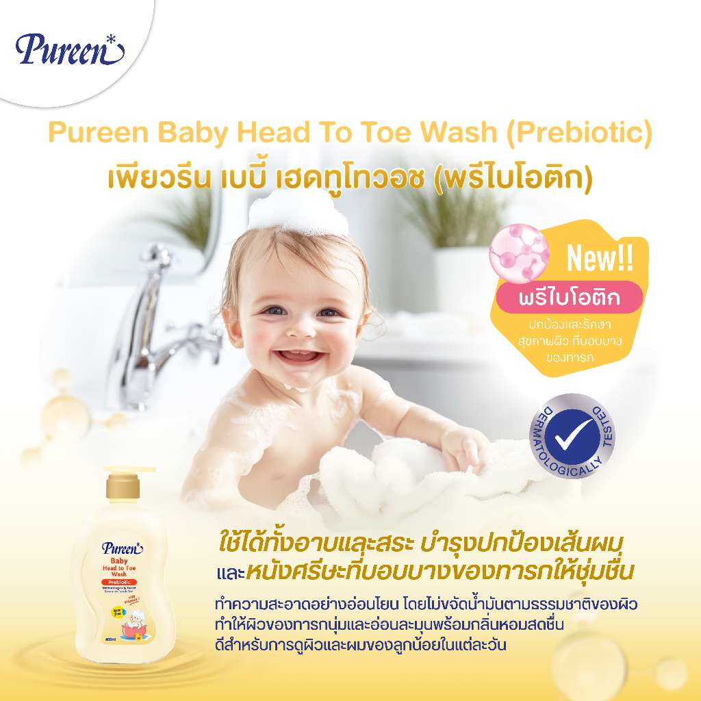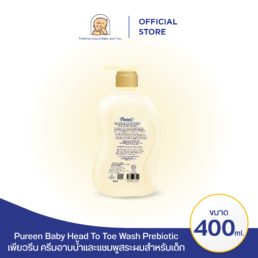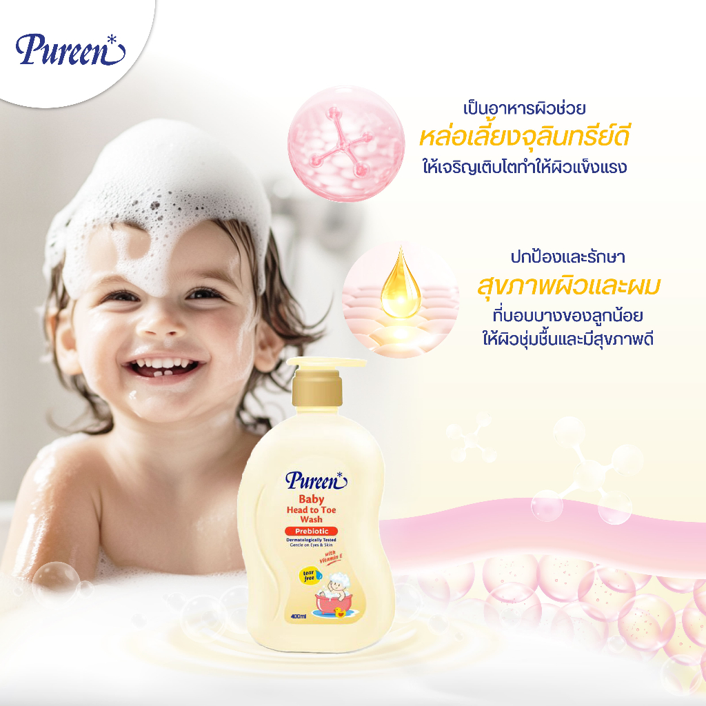 Pureen เพียวรีน เบบี้ เฮดทูโทวอช พรีไบโอติก 400 มล.ใช้ได้ทั้งอาบและสระ อ่อนโยน ปลอดภัย สำหรับผิวและเส้นผมบอบบางของทารก