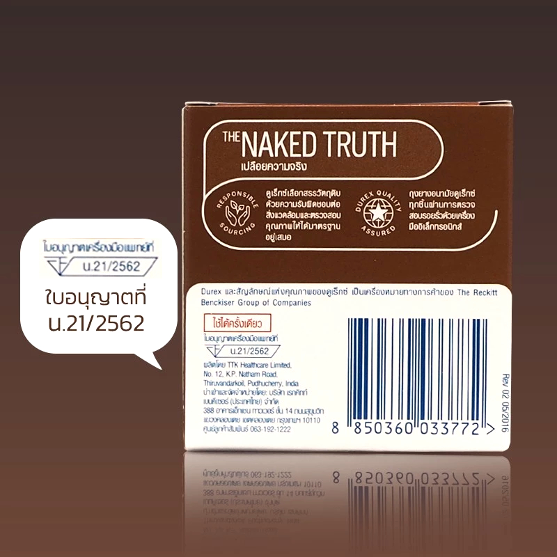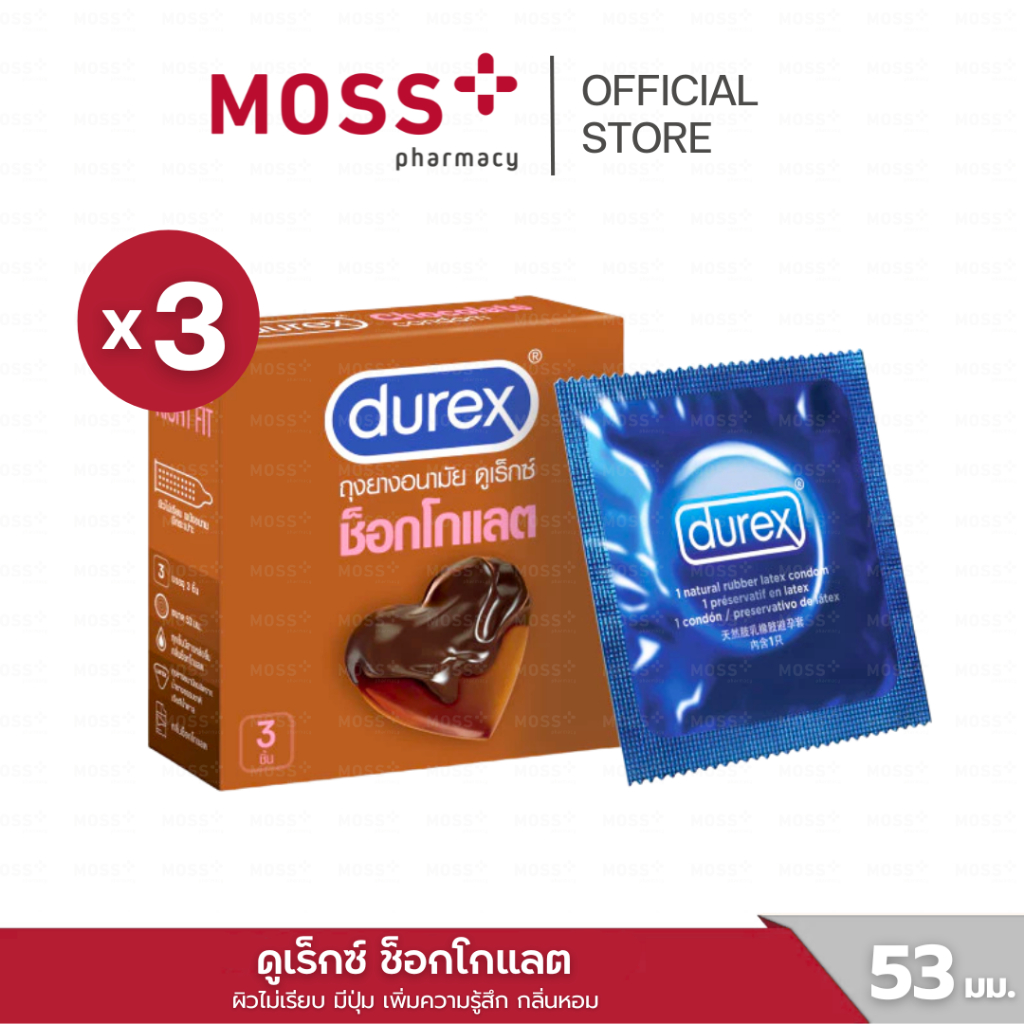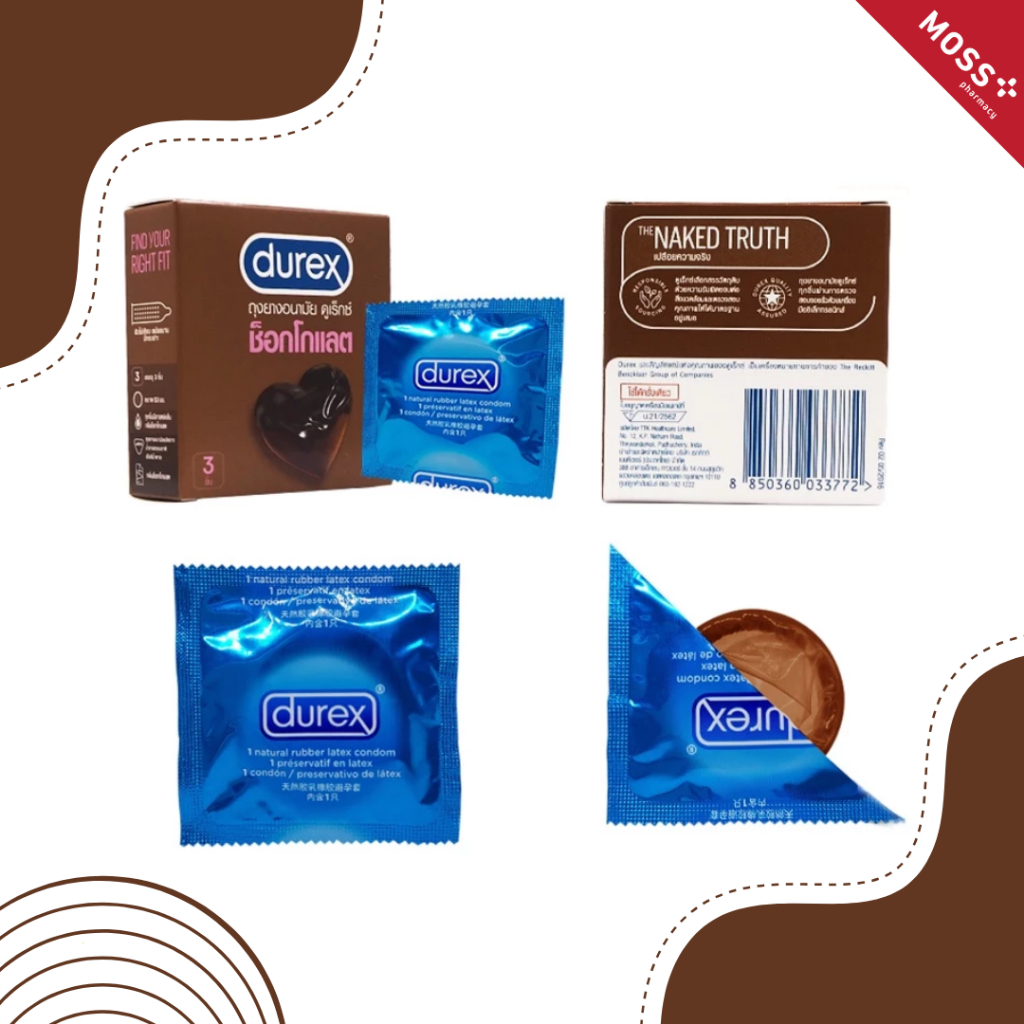 DUREX CHOCOLATE ถุงยางอนามัย (ดูเร็กซ์ ช็อคโกแลต) ผิวไม่เรียบมีปุ่ม เพิ่มความรู้สึก หอม ขนาด 53 มม. บรรจุ 1กล่อง (3ชิ้น)