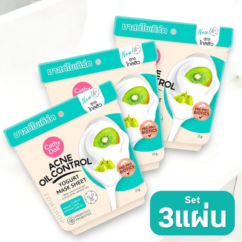 แผ่นมาส์กหน้า โยเกิร์ต【เขียว ลดสิวคุมมัน】Cathy Doll Acne Oil Control Yogurt Mask Sheet 25g
