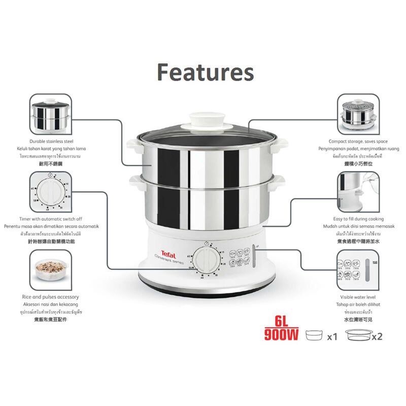 Tefal หม้อนึ่ง รุ่น VC145130 Steamer Convenaient Stainless กำลังไฟ 900 วัตต์ 6 ลิตร VC1451