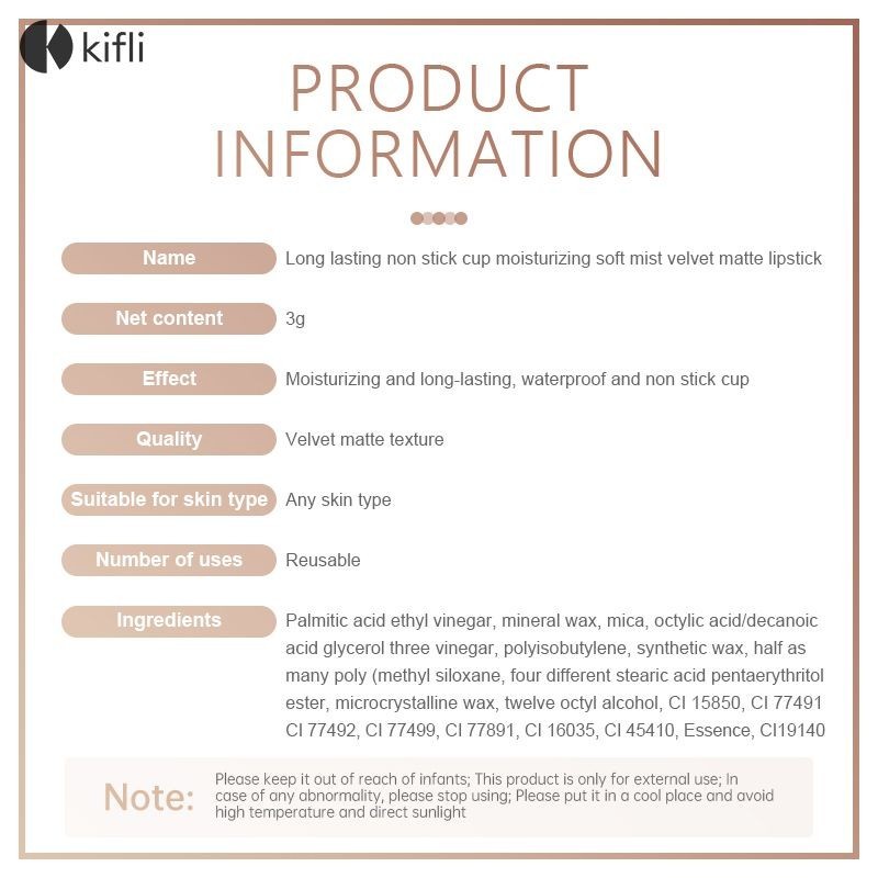 【kifli1 】Toot Dodo ลิปสติก เนื้อแมตต์กํามะหยี่ กันน้ํา ให้ความชุ่มชื้น ติดทนนาน ไม่จางหาย-KI