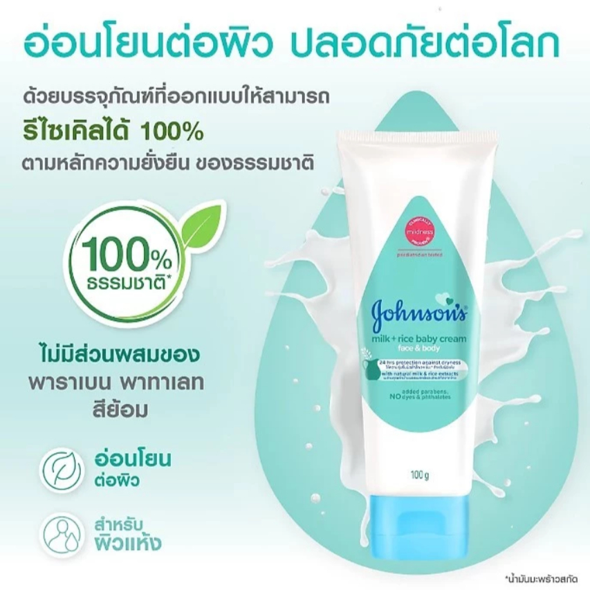 Johnson's Baby Cream 100g. จอห์นสัน ครีมบำรุงผิวหน้า ผิวกายเด็ก