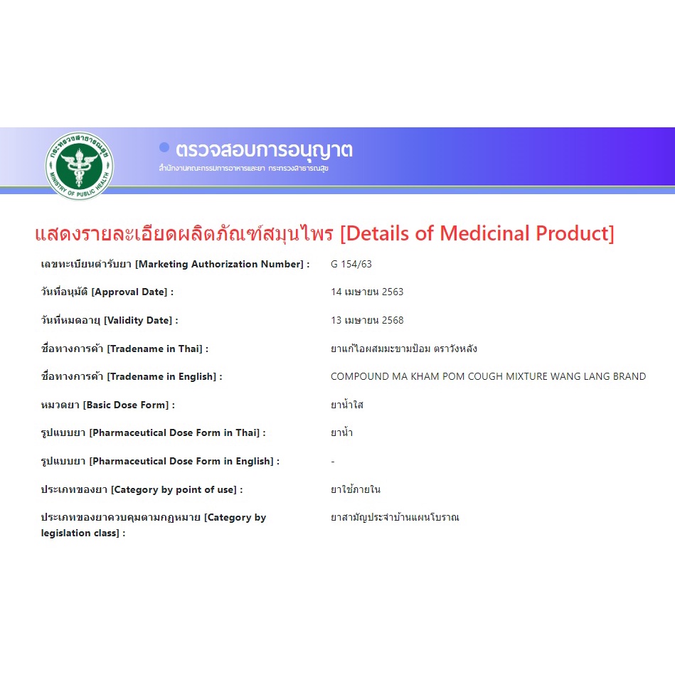วังหลัง ยาแก้ไอ ผสม มะขามป้อม ตราวังหลัง ยาน้ำ แก้ไอ ขับเสมหะ ชุ่มคอ ขนาด 60 ML 16507 / 120 ML 00956