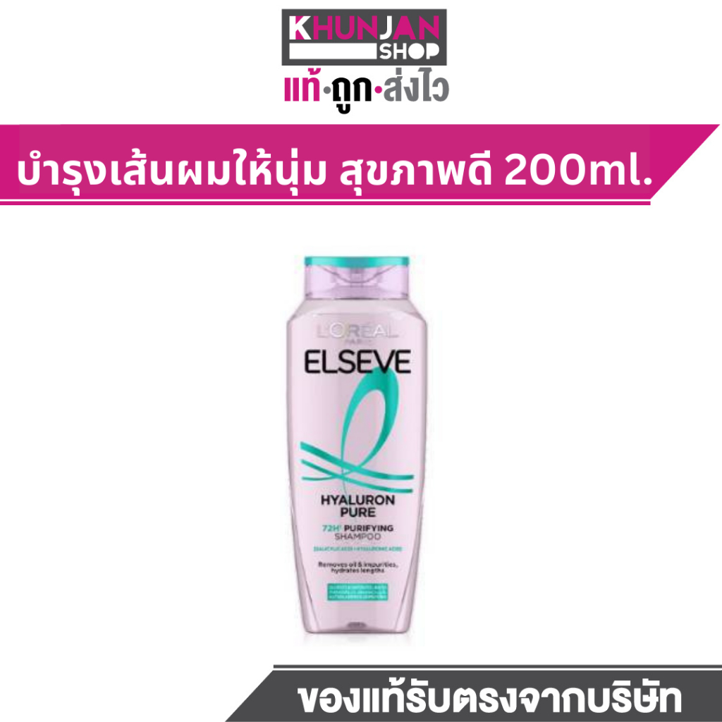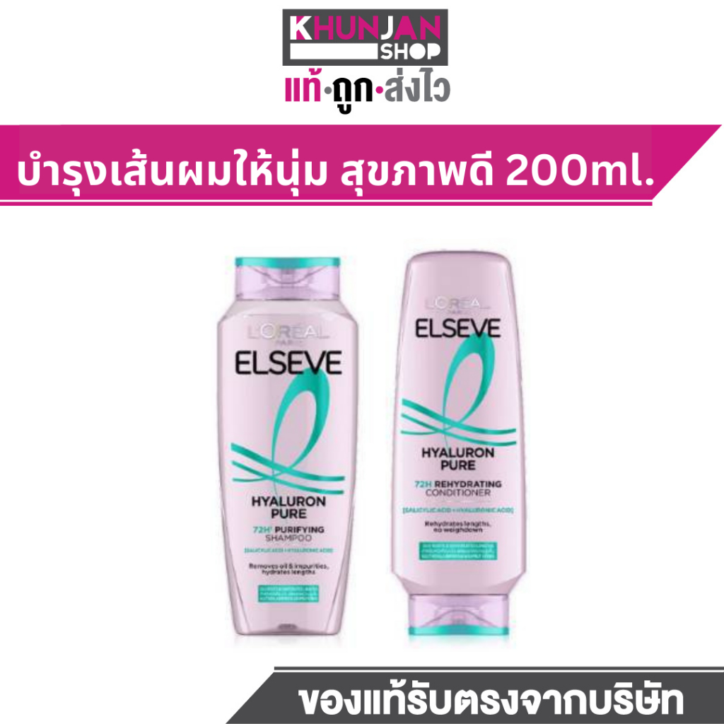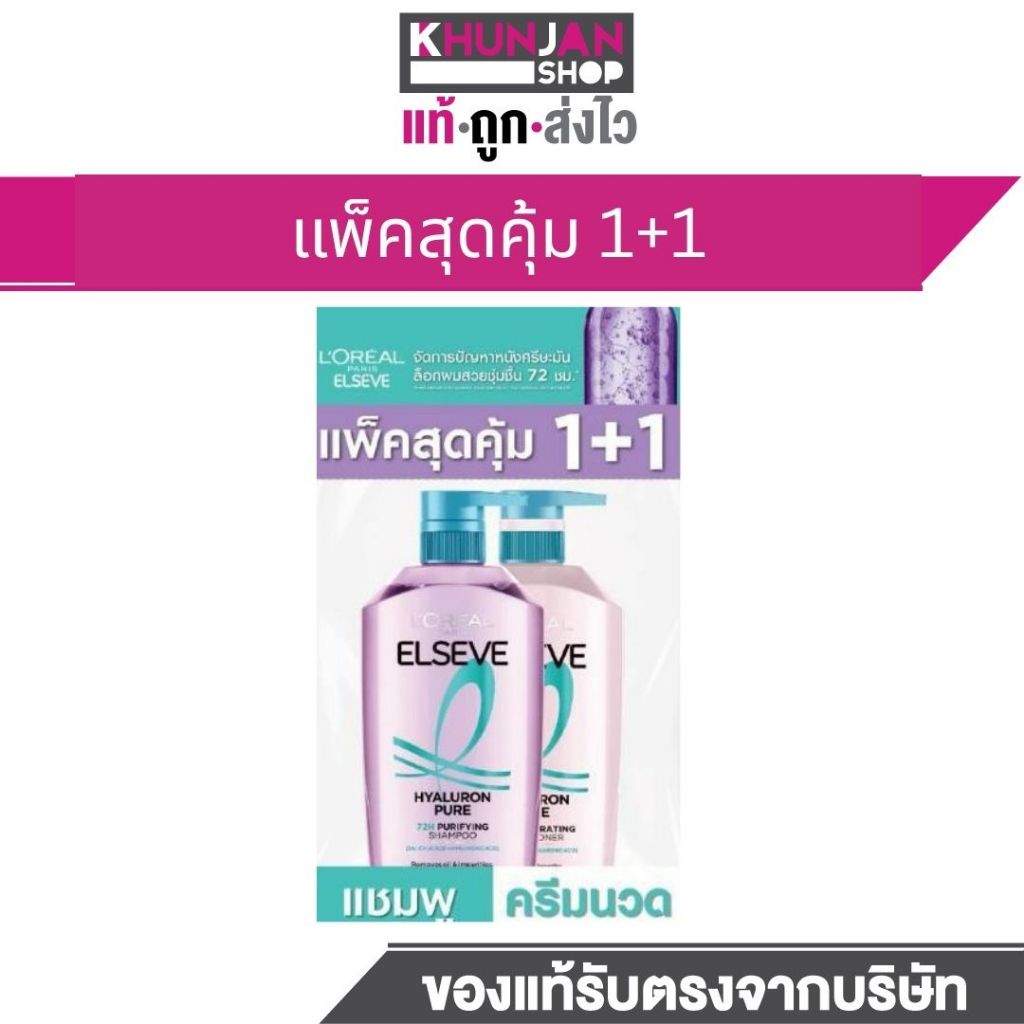 L'Oreal Elseve ลอรีอัล ปารีส เอลแซฟ ไฮยาลู รอน เพียว 72เอช เพียวริฟายอิ้ง แชมพู ครีมนวด Elseve Hyaluron Pure