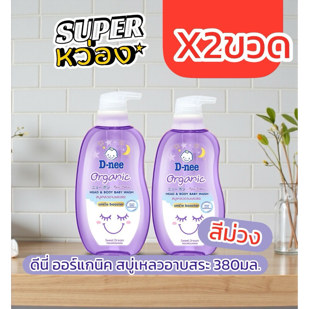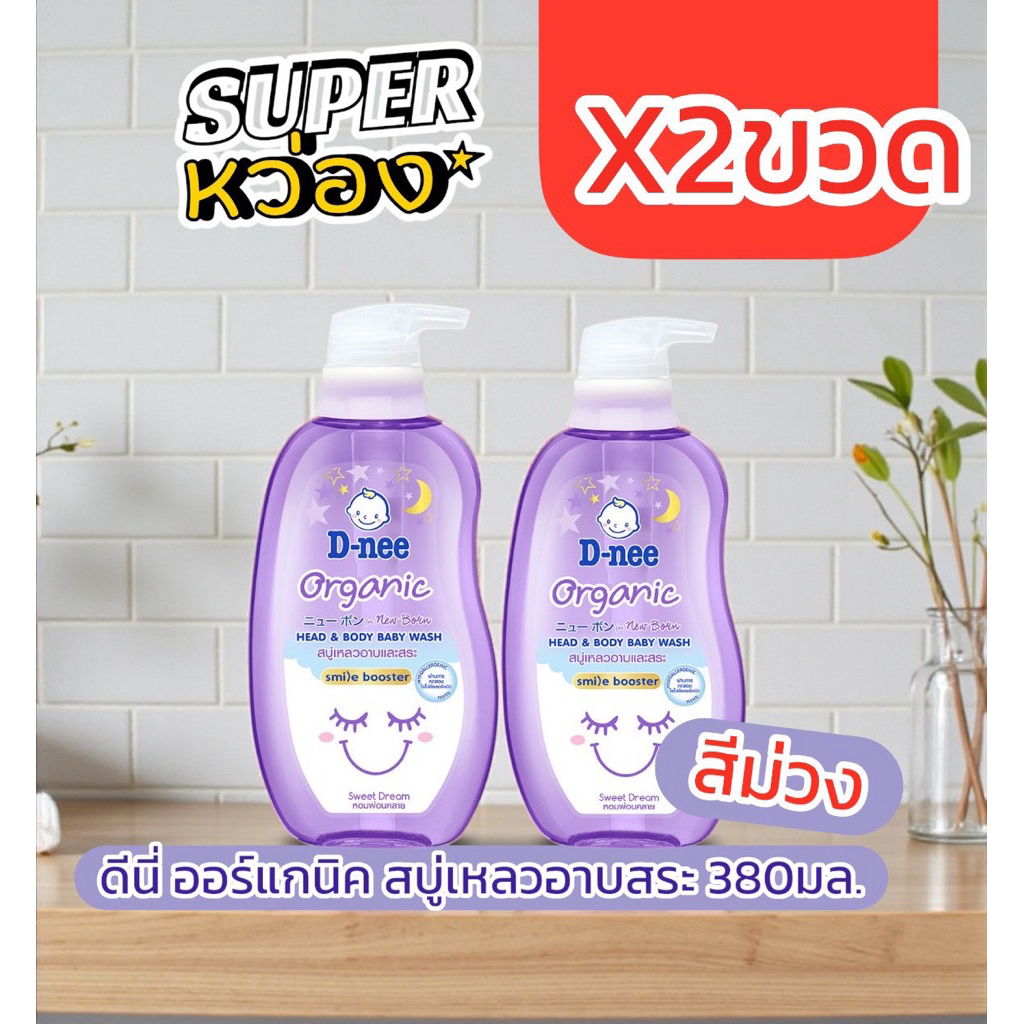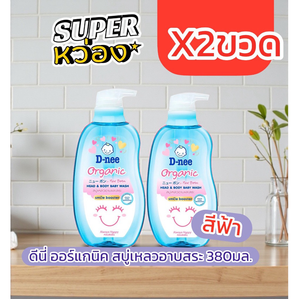 x2ขวด D-nee ดีนี่ ออร์แกนิค สบู่เหลวอาบและสระ 380มล.เลือกสีได้ ฟ้า ชมพู ม่วง เขียว