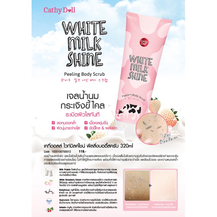 Cathy Doll White Milk Shine Peeling Body Scrub เคที่ดอลล์ เจลน้ำนมสครับขัดผิว 320 มิลลิลิตร