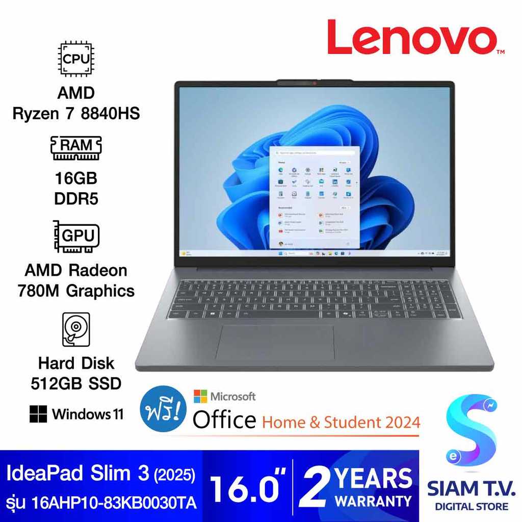 NOTEBOOK (โน้ตบุ๊ค) LENOVO IDEAPAD SLIM 3 16AHP10-83KB0030TA (LUNA GREY) โดย สยามทีวี by Siam T.V.
