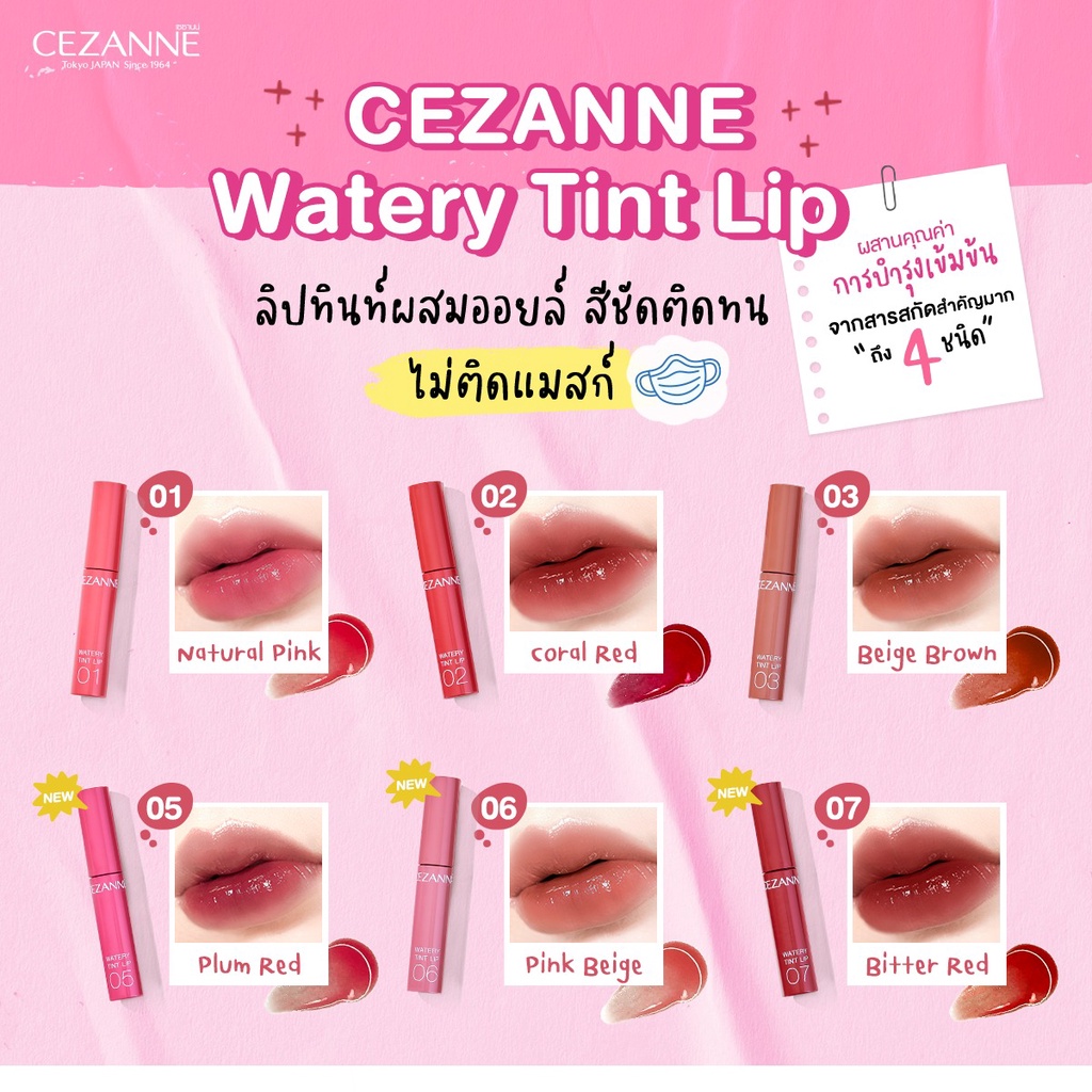 CEZANNE Watery Tint Lip เซซานเน่ วอเตอรี่ ทินท์ ลิป 4g.