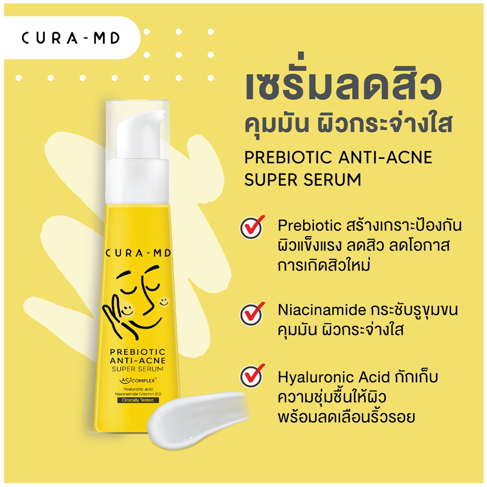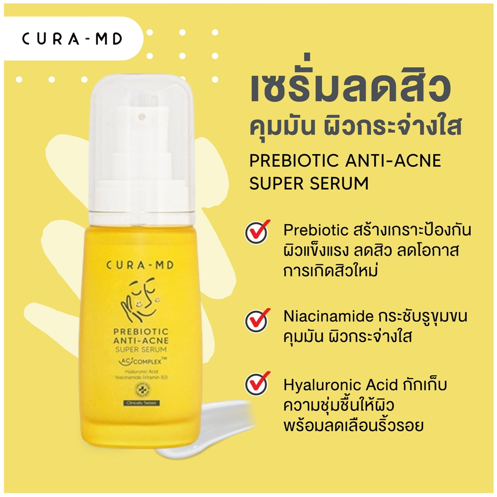 Cura-MD Prebiotic Anti-Acne Super Serum 30 ml. - คูร่า-เอ็มดี เซรั่มเข้มข้น สูตรพรีไบโอติก สำหรับผิวเป็นสิว 30 มล.