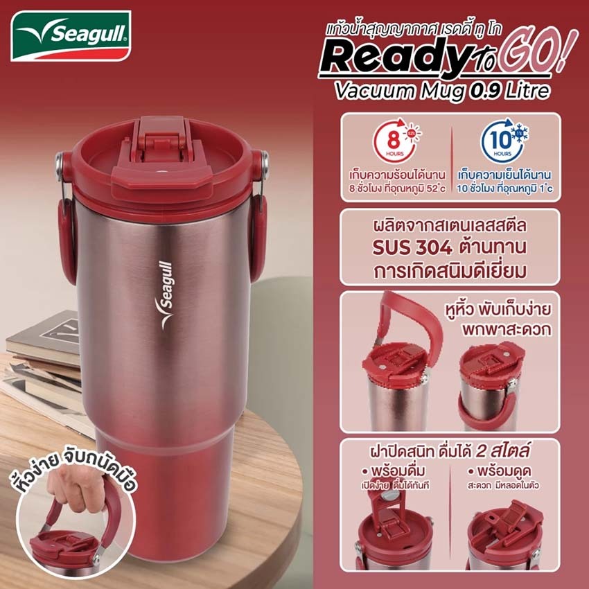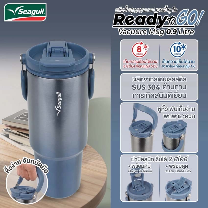 ซีกัล แก้วน้ำสุญญากาศ ทูโก รุ่นเรดดี้ ความจุ 0.9 ลิตร SEAGULL READY TO GO VACUUM MUG BLUE 0.9 L.