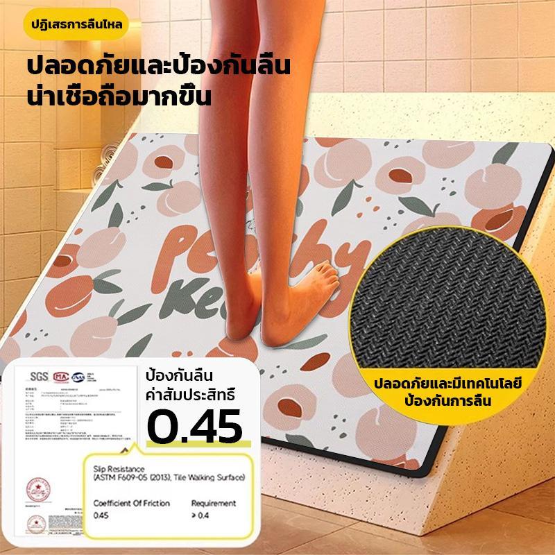 พรมเช็ดเท้าพรมเนื้อนุ่ม กันลื่น ดูดซับน้ำได้ดี 45X60CM หลากหลายสไตล์ วางได้ในห้องนอน ห้องน้ำ ห้องครัว