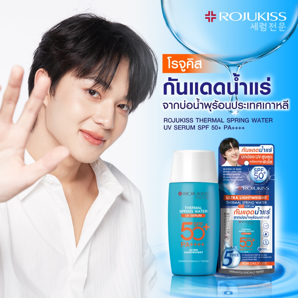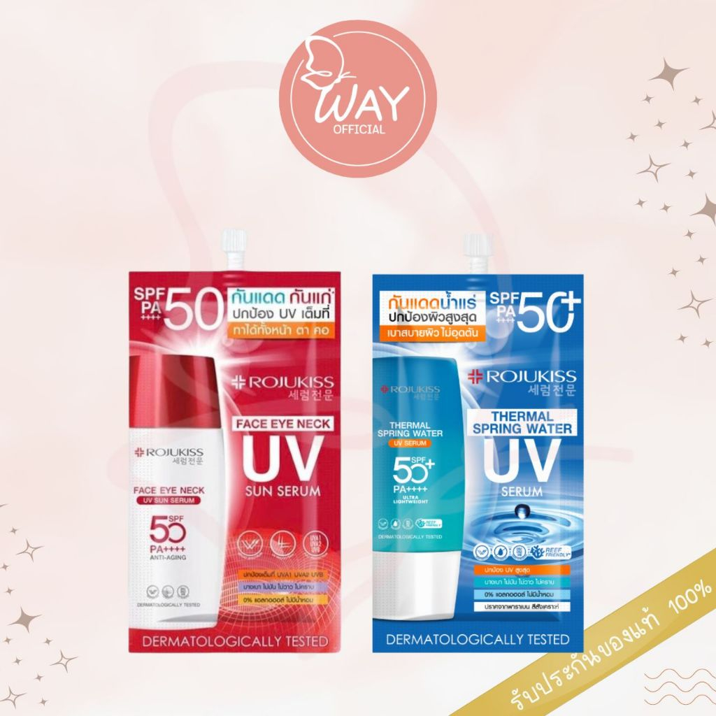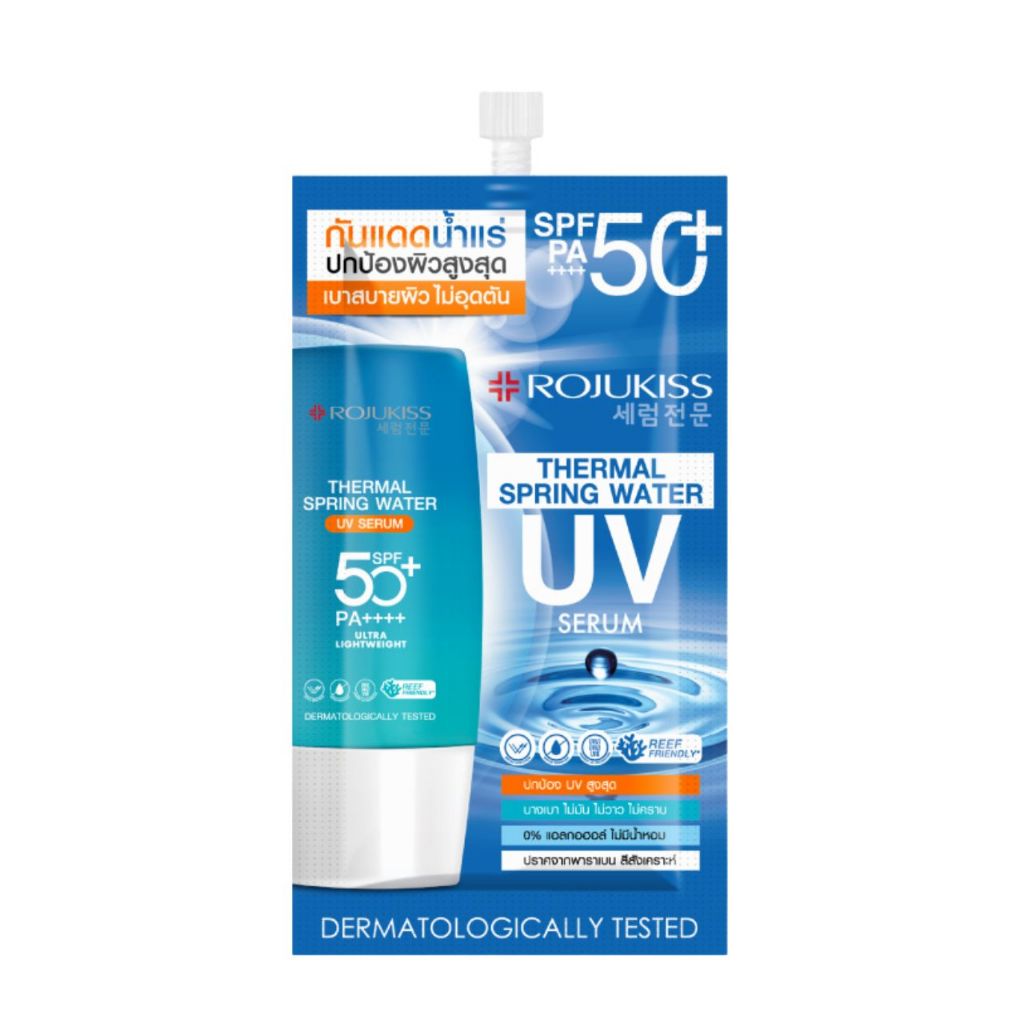 [ซอง] โรจูคิสกันแดดน้ำแร่ , เฟซอายเนค ยูวีซัน เซรั่ม กันแดดพี่หนุ่ม Rojukiss Thermal Spring / Face Eye Neck UV 7ml