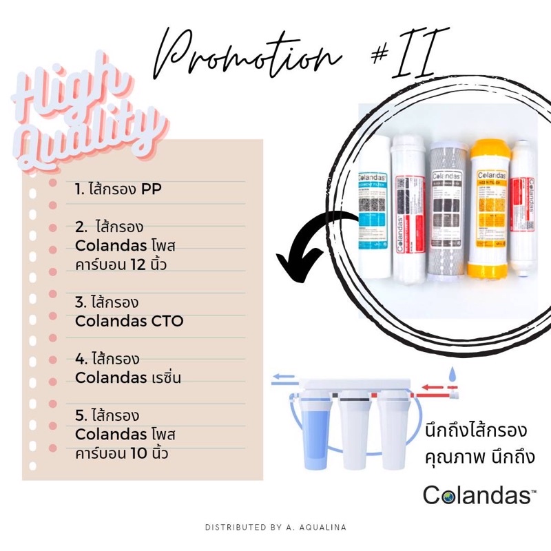 ไส้กรองน้ำดื่ม Colandas 5 ขั้นตอน แบบมีไส้กรอง คาร์บอนบล็อค (CTO)