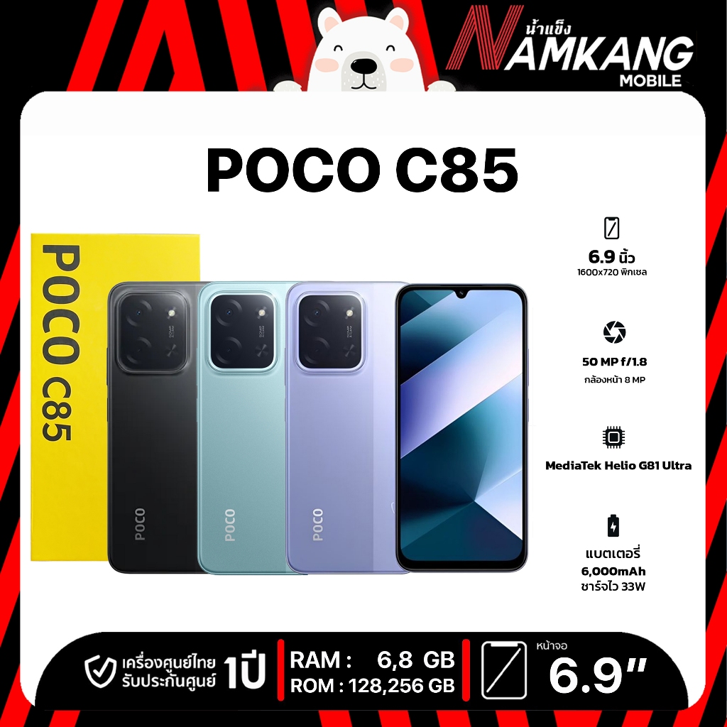 Xiaomi POCO C85 4G (6/128GB,8/256GB) ชิปเซ็ต MediaTek Helio G81-Ultra จอแสดงผล Dot Drop ขนาด 6.9 นิ้ว แบตเตอรี่ 6000mAh