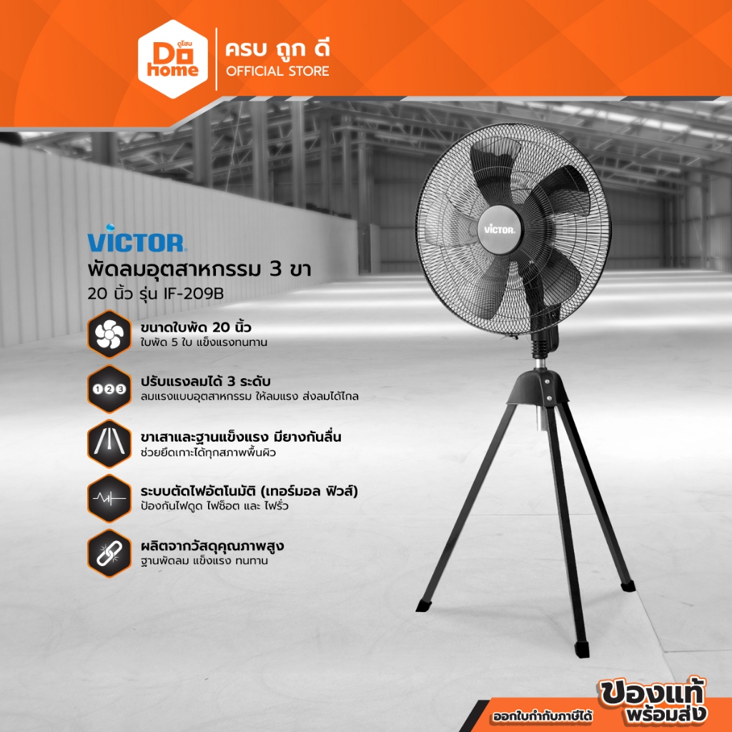 VICTOR พัดลมอุตสาหกรรม สามขา ขนาด 20 นิ้ว รุ่น IF-209B |MC|