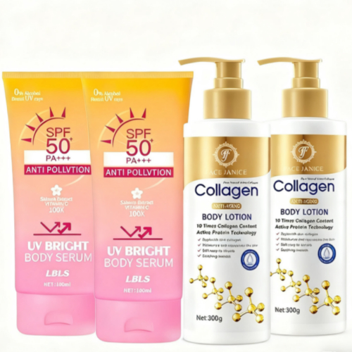 【2 แถม 2】LBLS UV กันแดดปริมาณ180ml SPF50+ และ โลชั่นคอลลาเจนทองคำ โลชั่นผิวขาว 300ml Oil-control Moisturizing Whitening