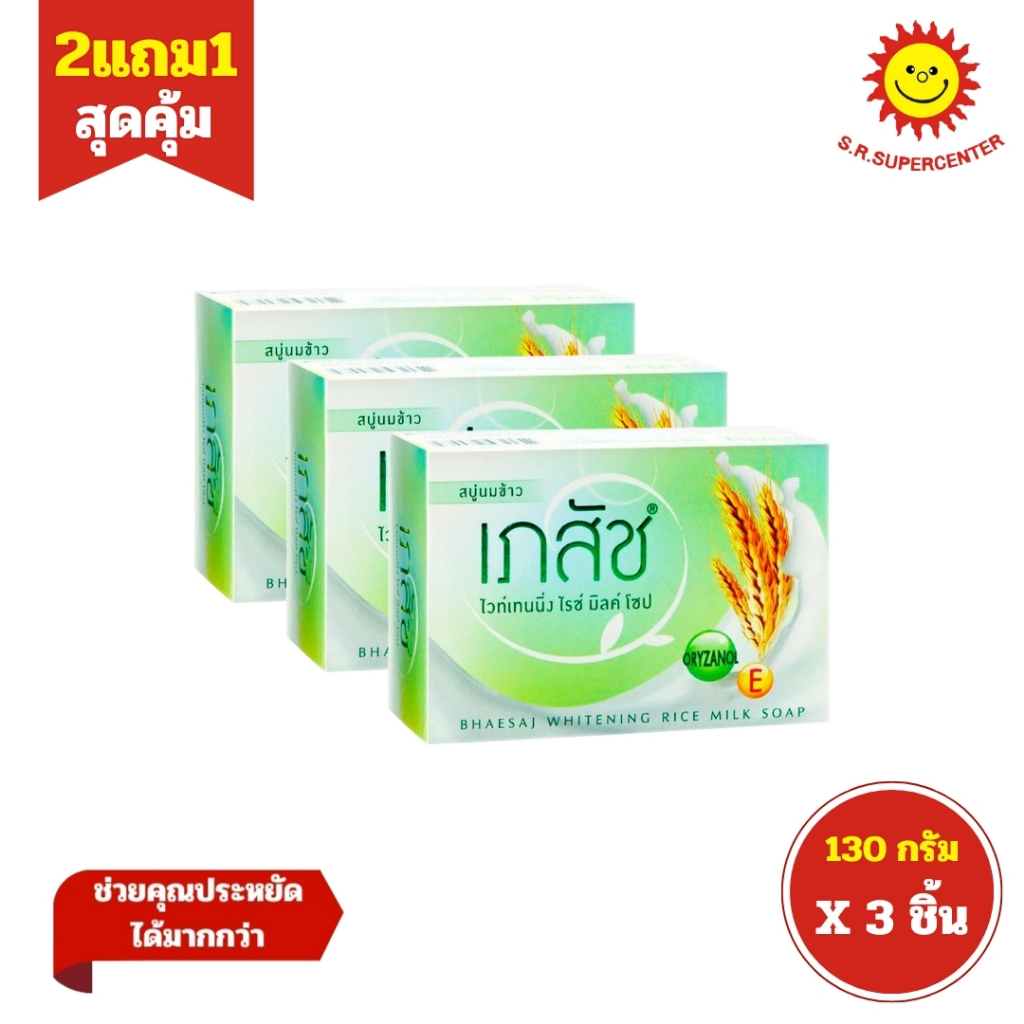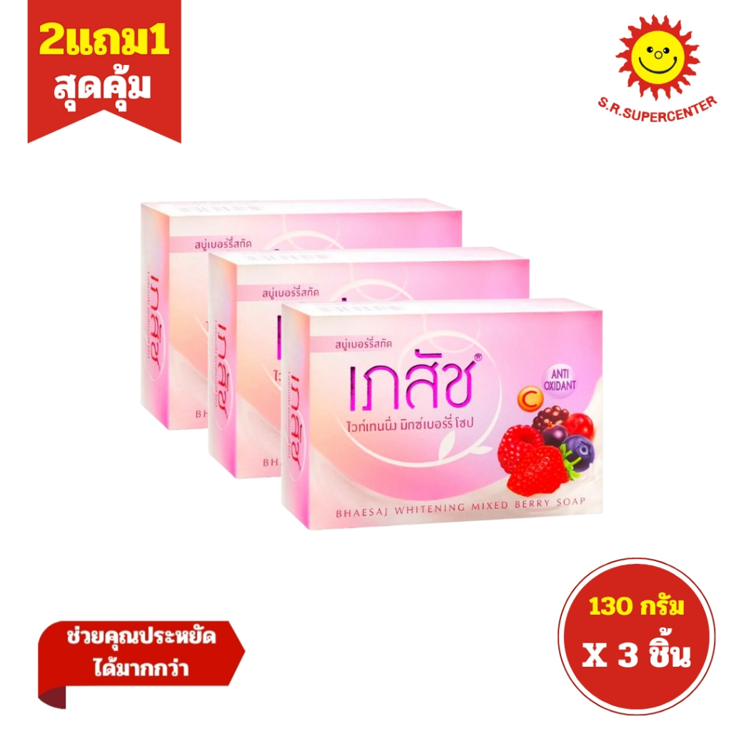 [ 2แถม1 ] Bhaesaj Whitening Soap เภสัช ไวท์เทนนิ่ง โซป สบู่เภสัช ขนาด 130 กรัม (3ก้อน) คละสูตร