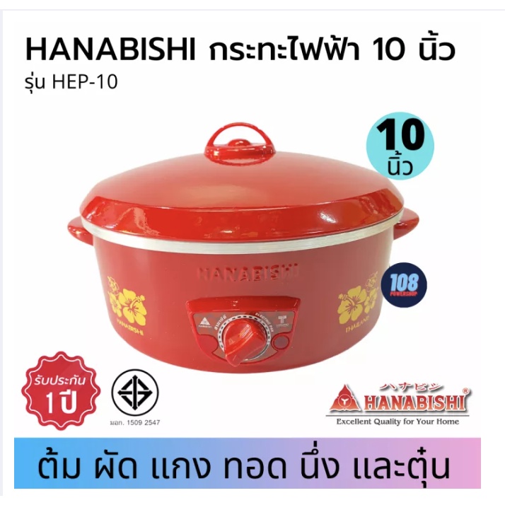 HANABISHI กระทะไฟฟ้า รุ่น HEP-10 (ขนาด10"ไม่มีซึ้ง) กระทะไฟฟ้า กะทะไฟฟ้า กระทะไฟฟ้าเอนก หม้อสุกี้ไฟฟ้า หม้อชาบูไฟฟ้า