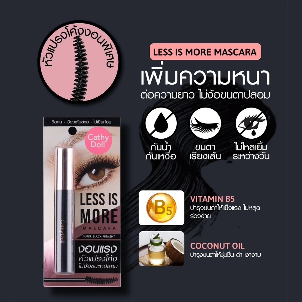 (1 ชิ้น) Cathy Doll Less Is More Mascara เคที่ดอลล์ เลส อีส มอร์ มาสคาร่า 8 กรัม