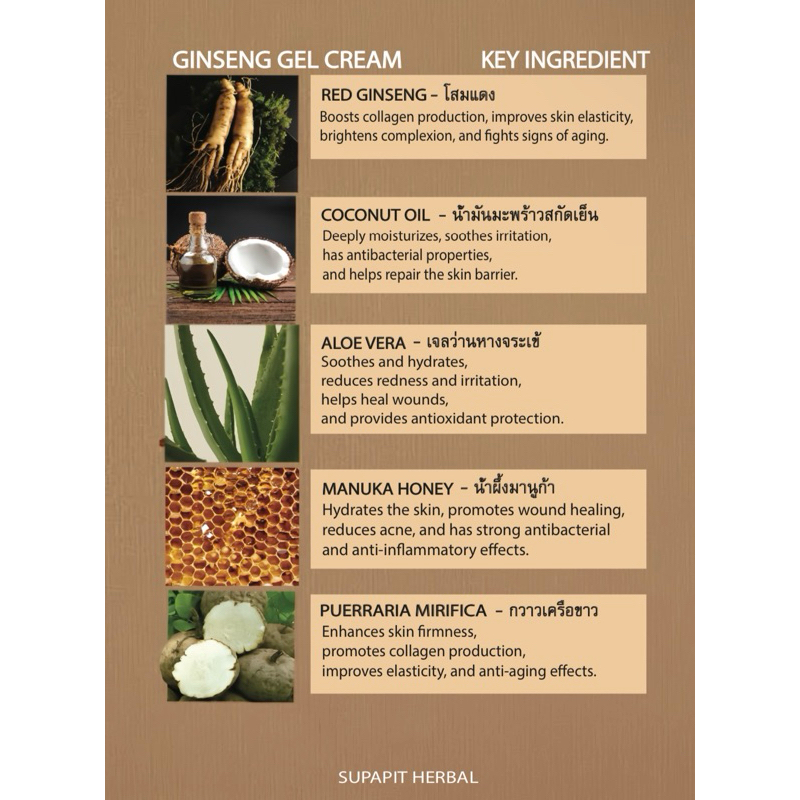 เจลครีมโสมธรรมชาติ The Moisturizer Gingseng Gel Cream + 5minerals rich herb 50g. | Supapit Herbal