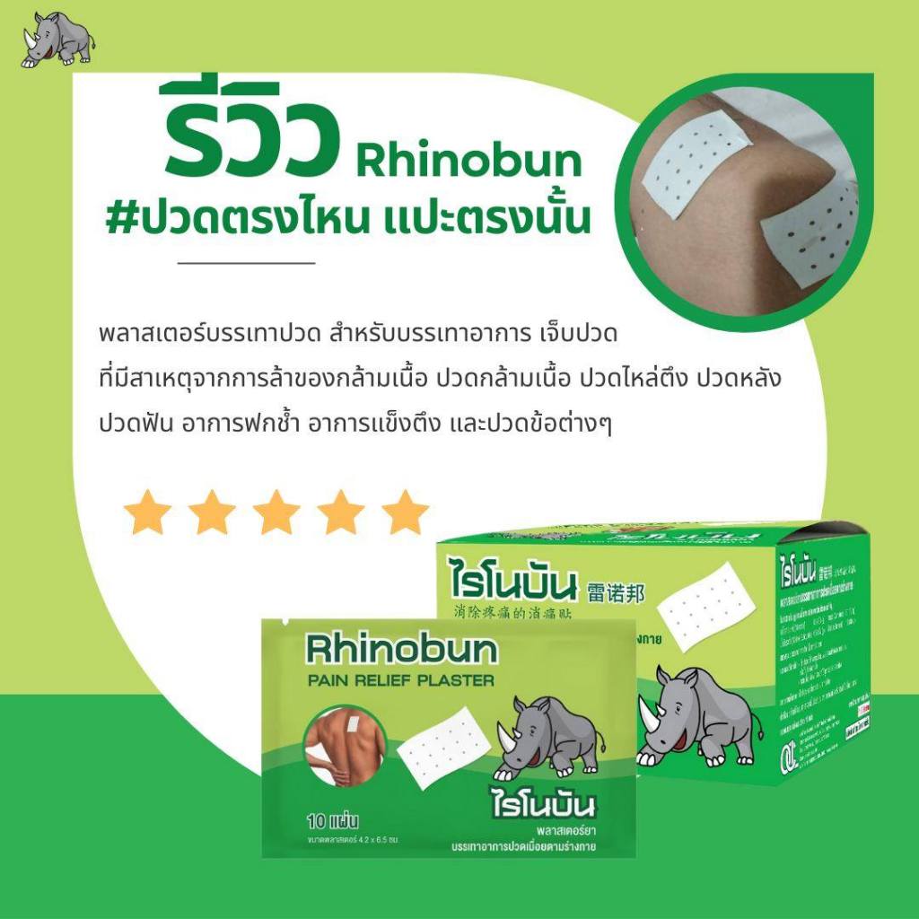 Rhinobun Pain Relief Plaster ไรโนบัน พลาสเตอร์ยา [10 แผ่น] พลาสเตอร์ พลาสเตอร์แก้ปวด