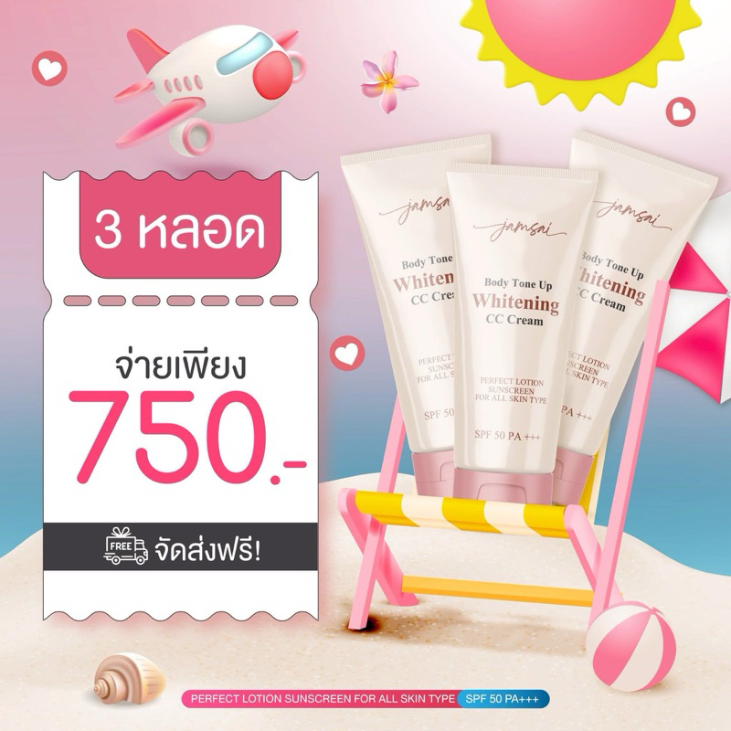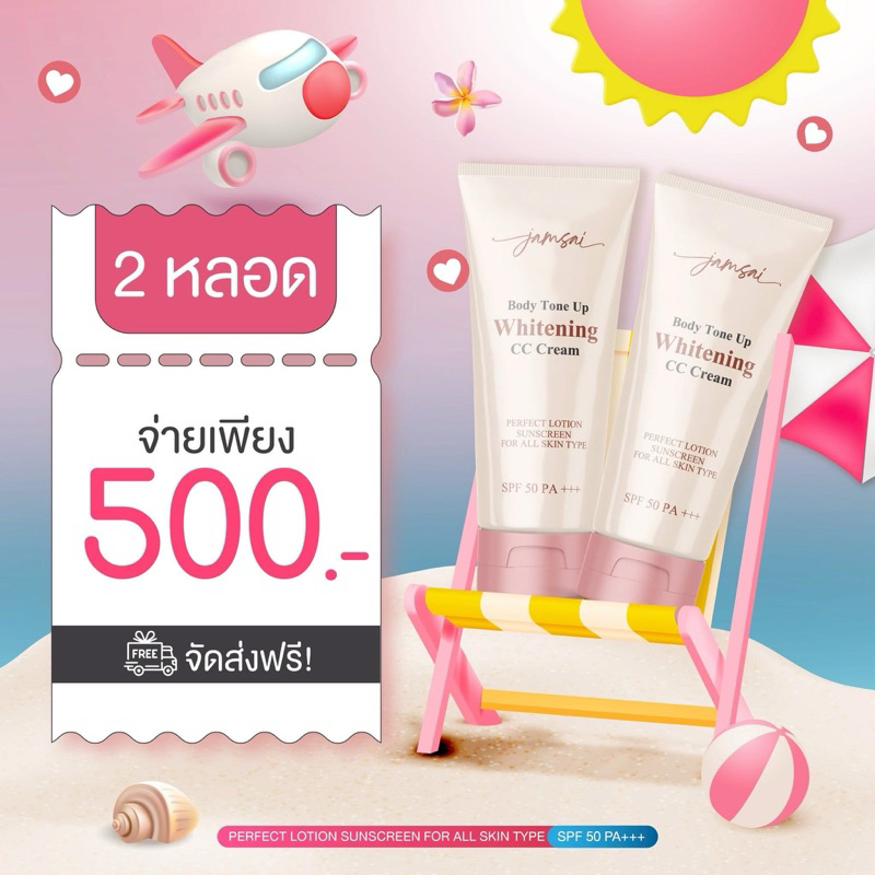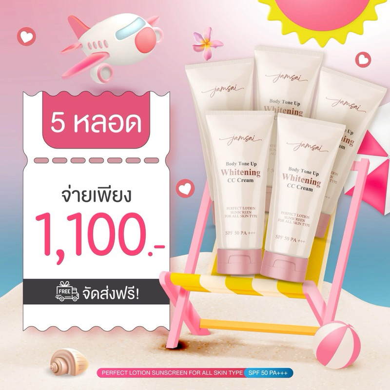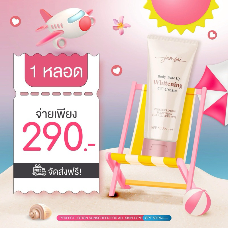 [ของแท้ พร้อมส่ง‼️]กันแดดแจ่มใส Jamsai Body Tone Up Whitening CC Cream แจ่มใสซีซีครีม 50pa ครีมกันแดดพอกผิว ไม่วอกกันน้ำ