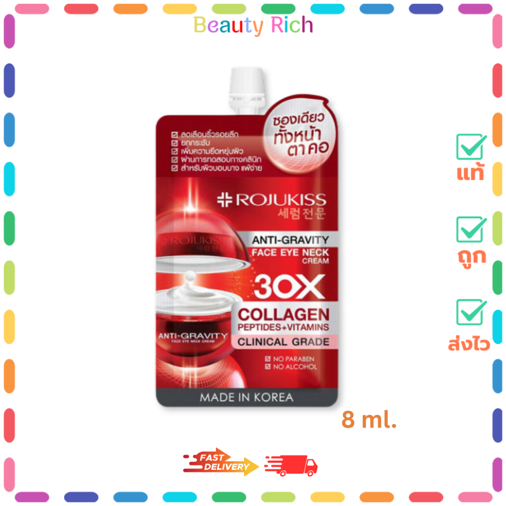 (1 ซอง) Rojukiss Anti-Gravity Face Eye Neck Cream - โรจูคิส เฟซ อาย เนค ครีม (8 ml.)