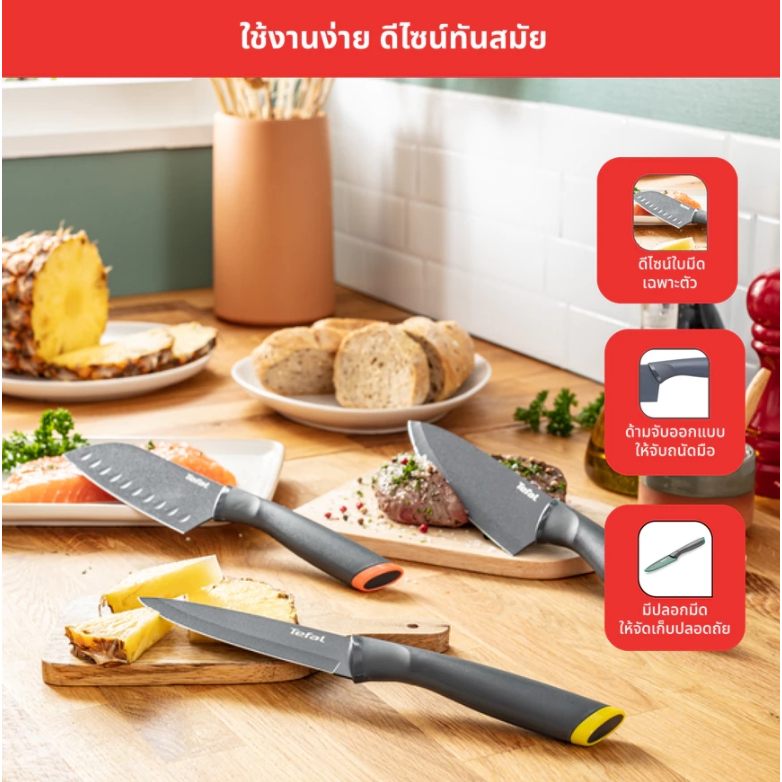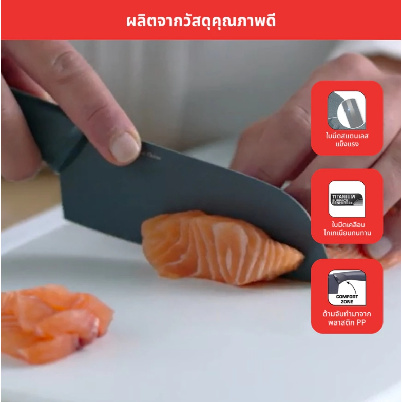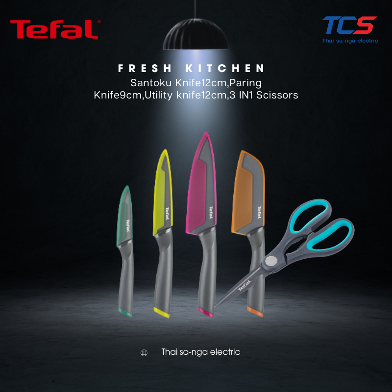 Tefal CW-Fresh Kitchen มีดทำอาหารสแตนเลส เคลือบไทเทเนียม 9/12 ซม. พร้อมปลอกมีด (Titanium Reinforced Coating)
