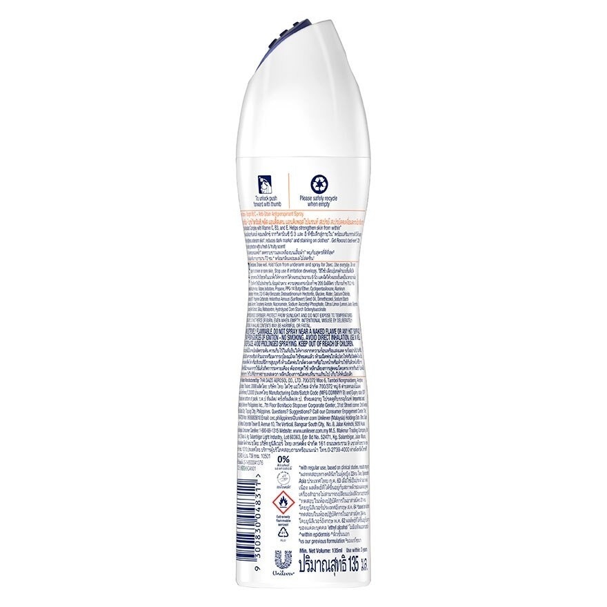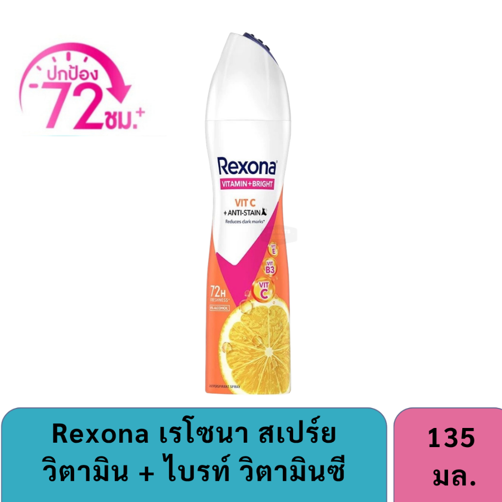 ลดเพิ่ม 30% 🔥 Rexona เรโซน่า Spray Vitamin + Bright Vit C + Anti-Stain Antiperspirant 135 Ml. สเปรย์ลดเหงื่อ