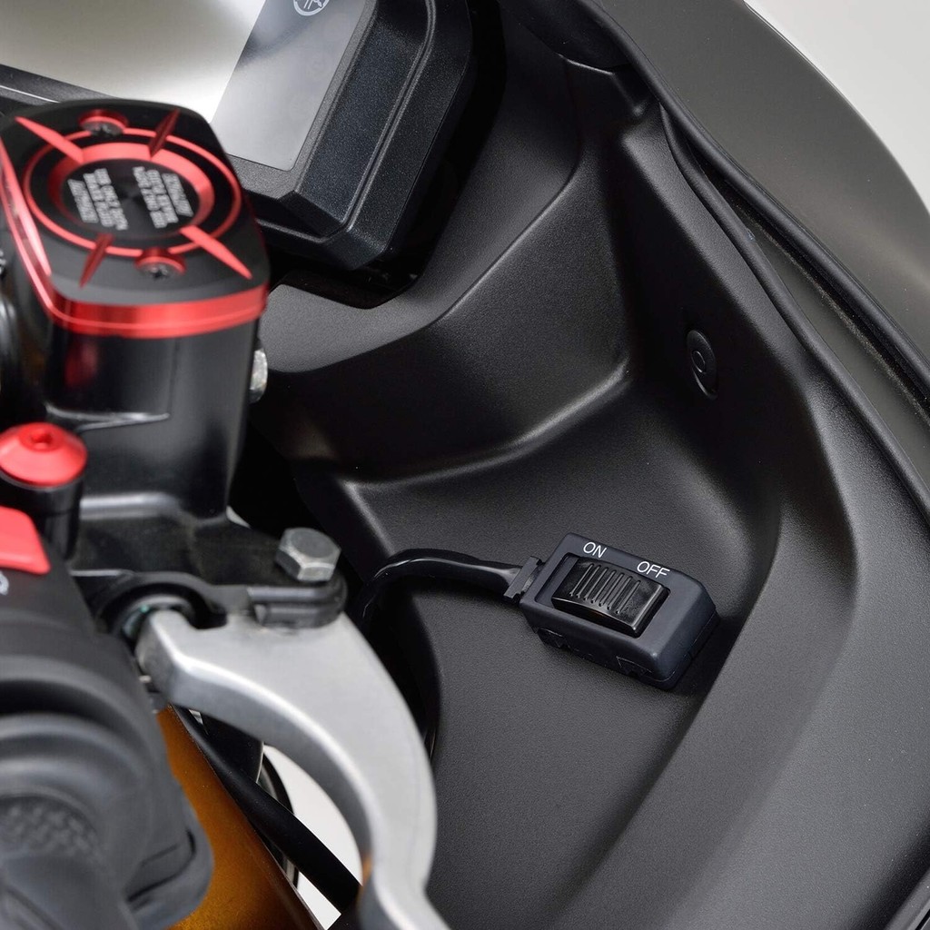 สวิตช์มอเตอร์ไซค์ Daytona พร้อมเทปสองหน้า รองรับ 100W ความยาวสาย 800mm แบบหน้าแบน - สีดำ ญี่ปุ่น