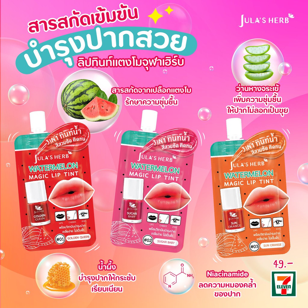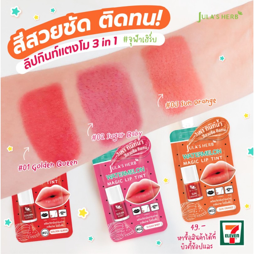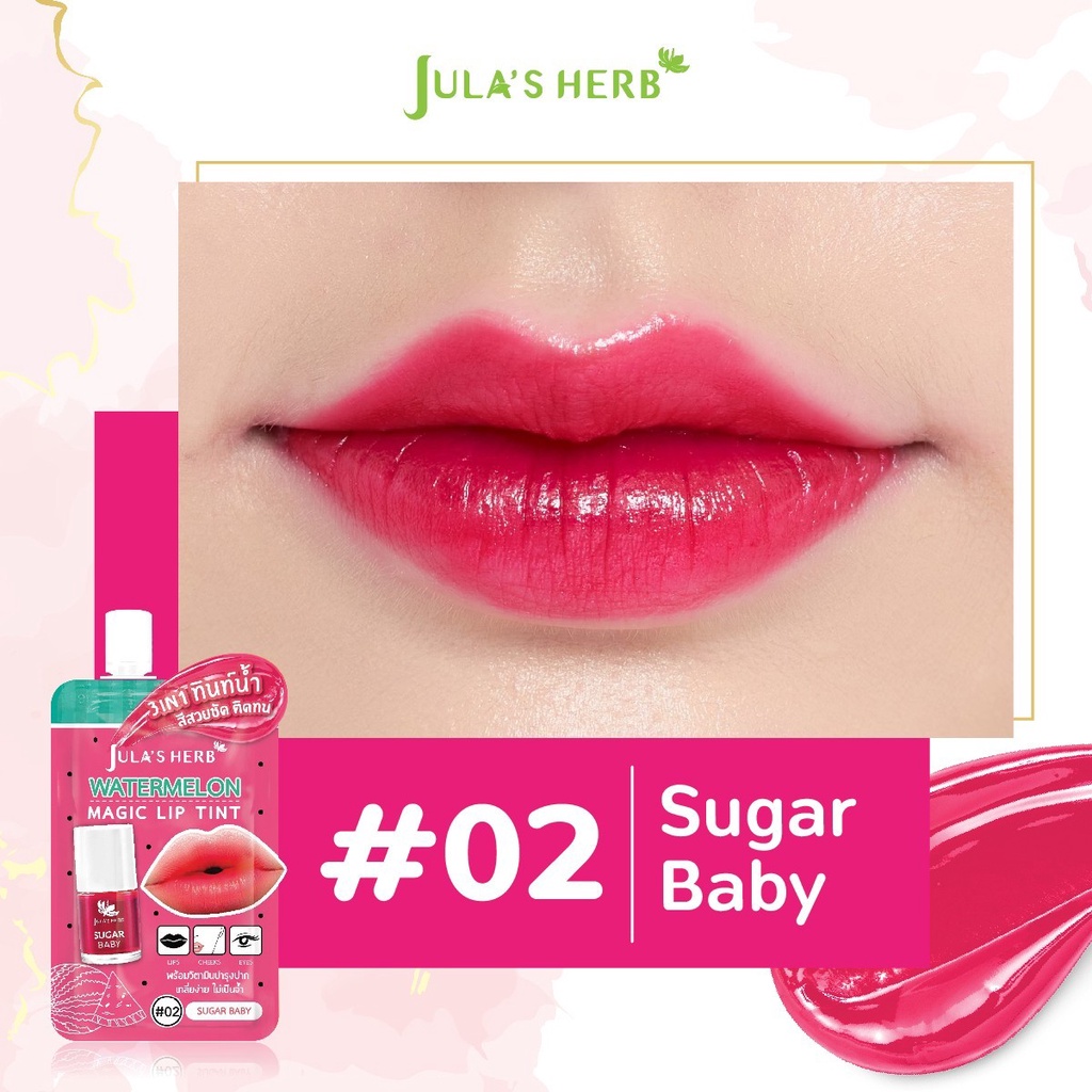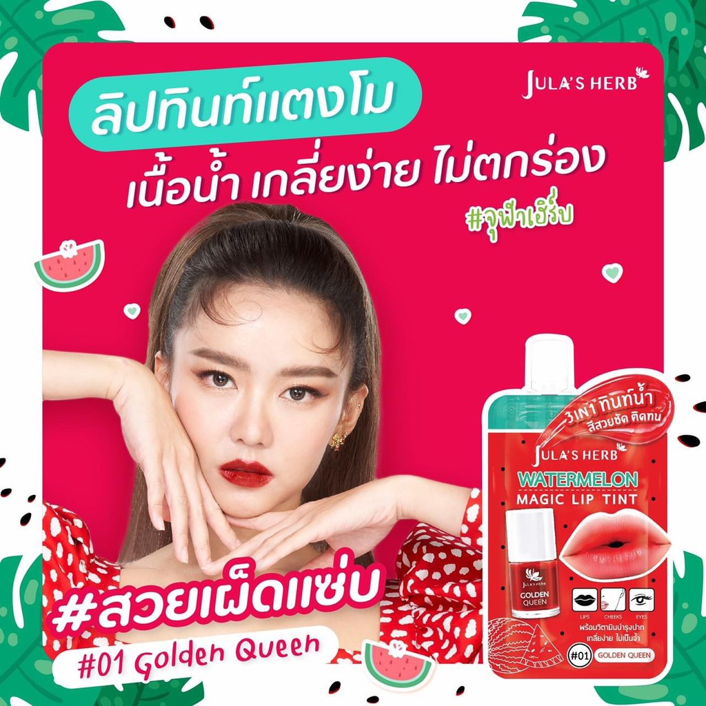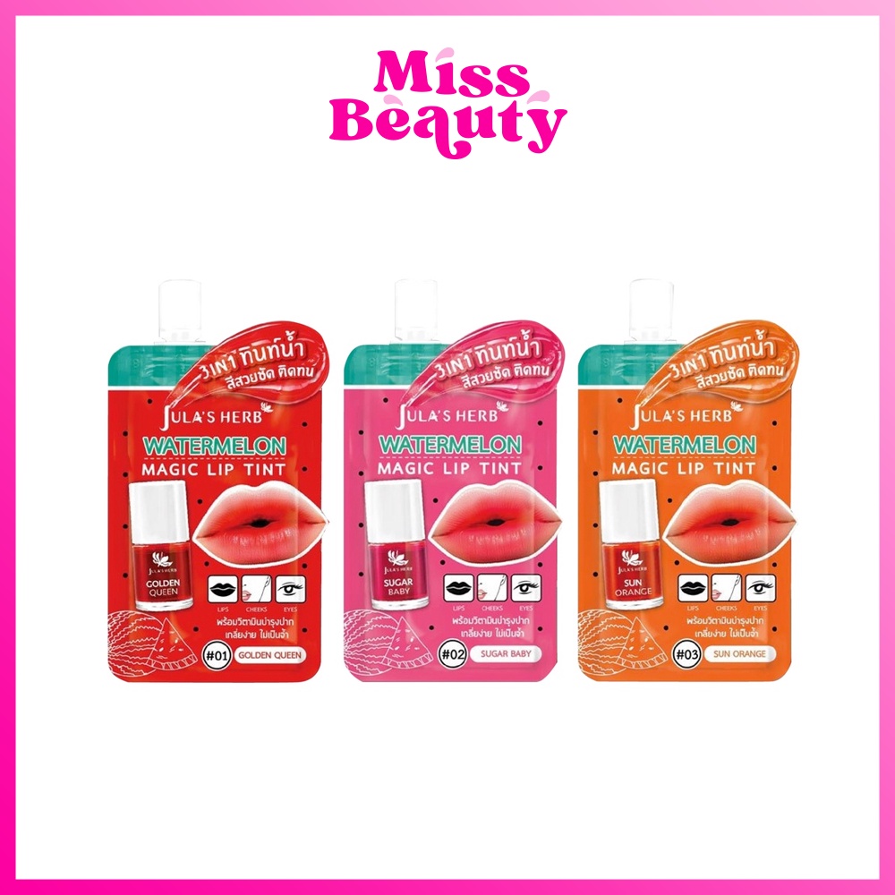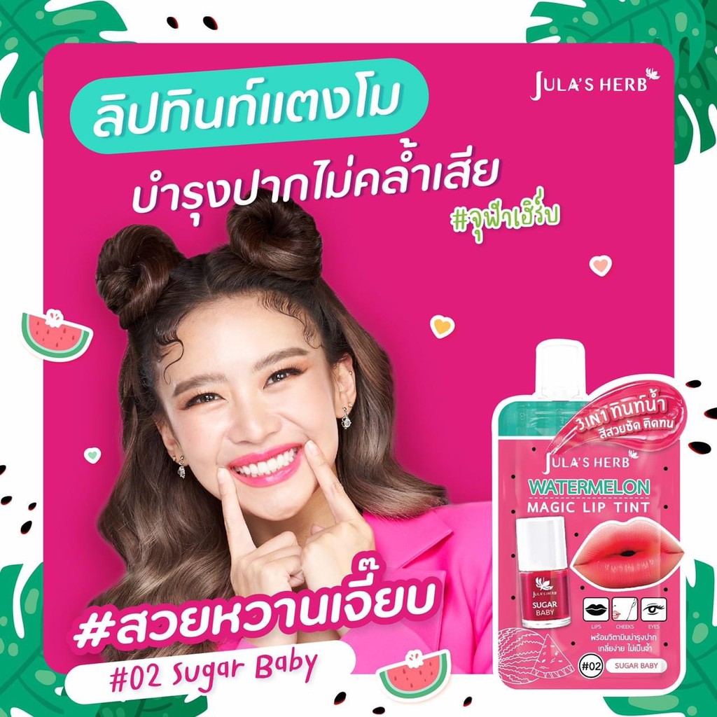 (1 ซอง) Jula's Herb Watermelon magic lip tint จุฬาเฮิร์บ วอเตอร์เมลอน เมจิค ลิป ทินท์ 2 กรัม